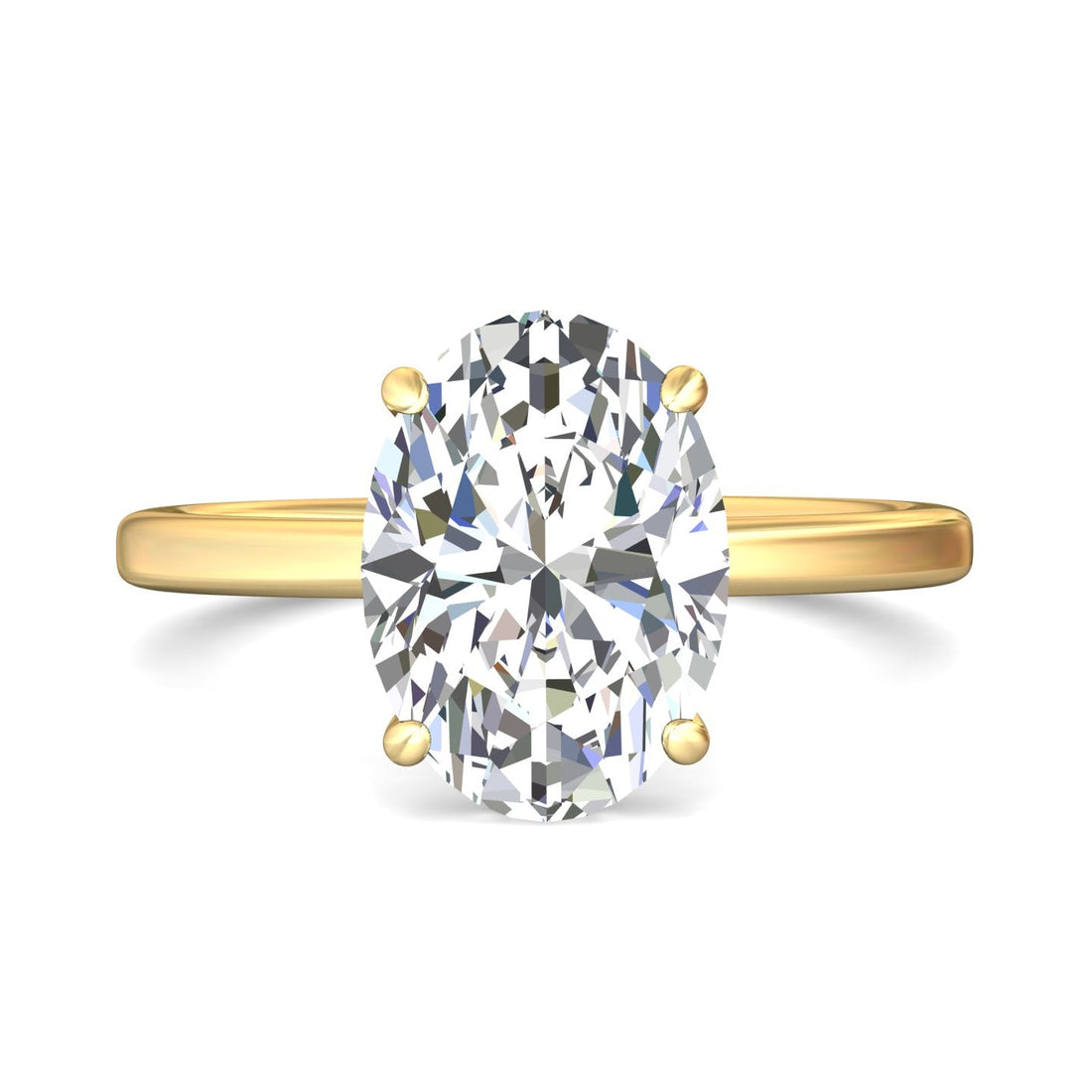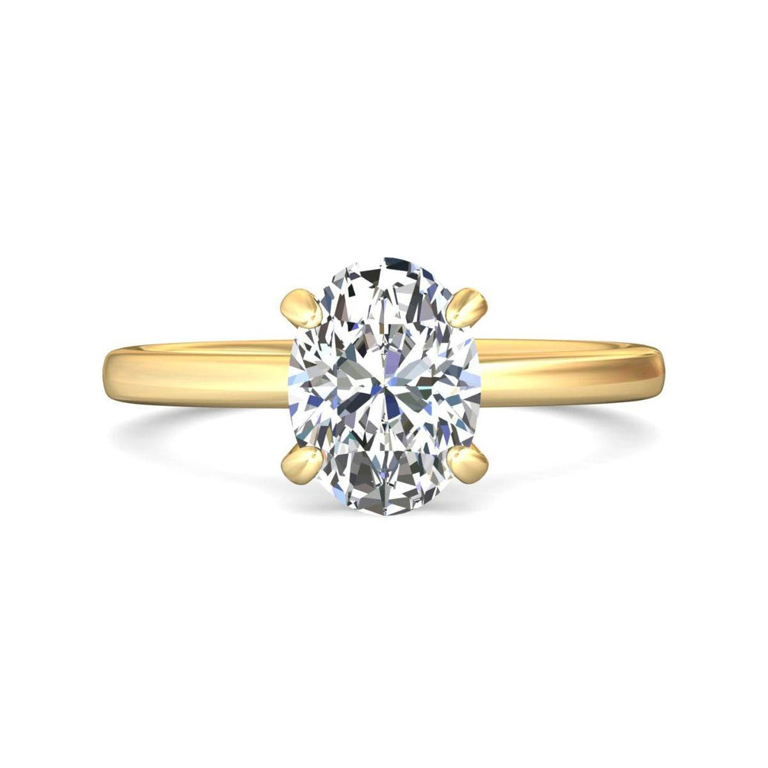 Claw Set Oval Cut Diamond Halo Engagement Ring with Plain Band - 18K Yellow - DG & Co. Jewellery