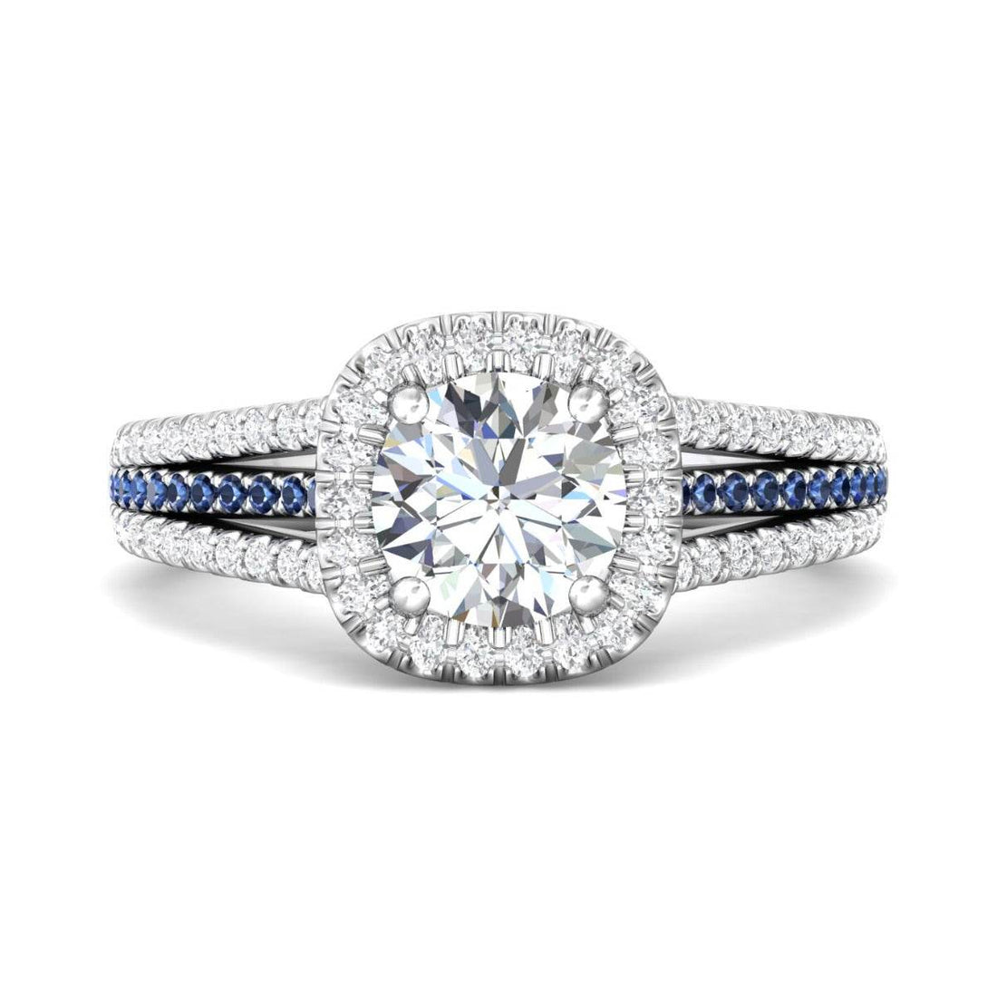 Claw Set Oval Cut Diamond Halo Engagement Ring with Plain Band - 18K White - DG & Co. Jewellery