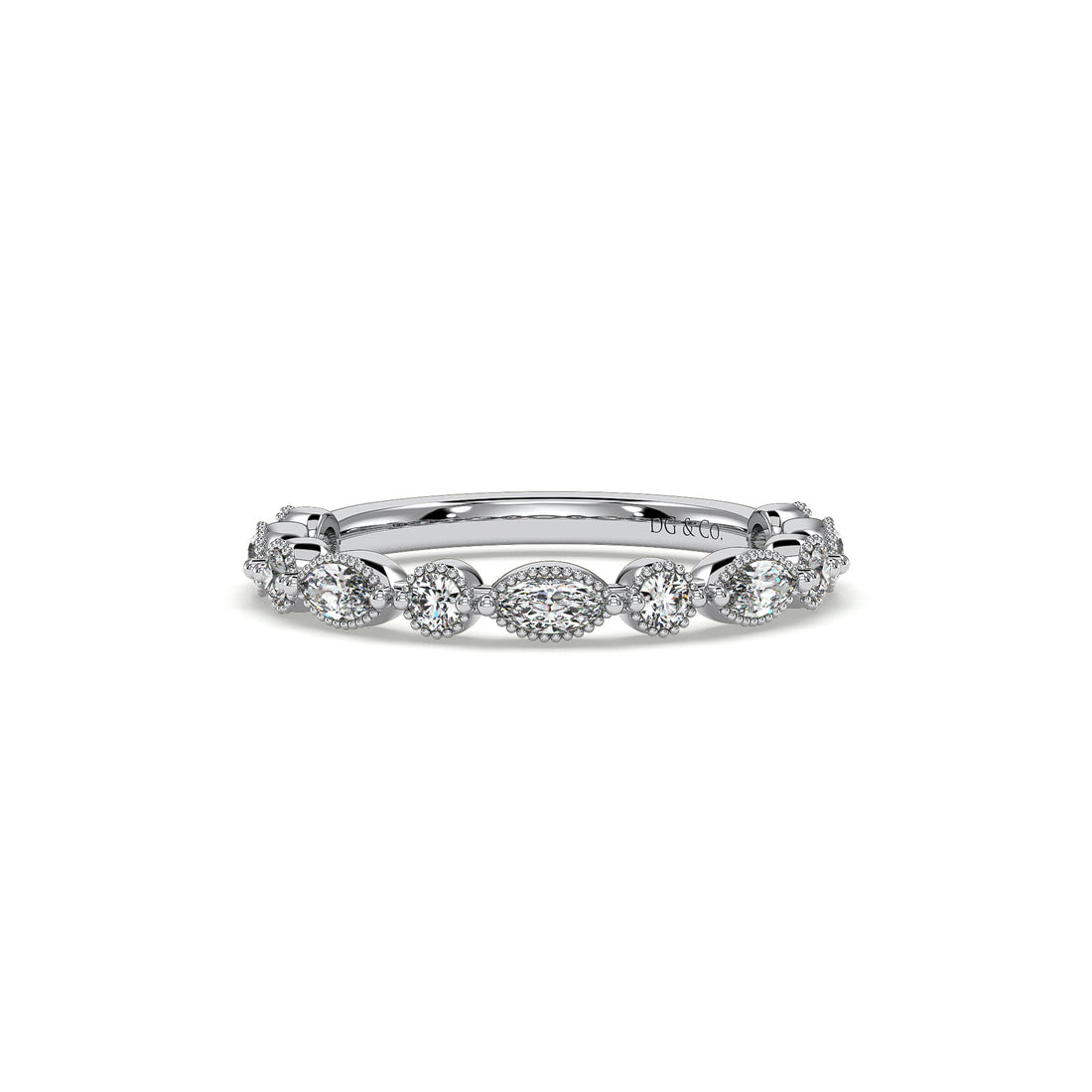 The eternity band — a ring set with diamonds or gemstones around its full circumference — is one of the most popular anniversary ring styles, and its symbolism is immediately apparent. A continuous circle of stones with no beginning and no end speaks directly to the nature of a commitment that has only grown stronger with time. The half-eternity band places stones across the top half of the shank only, offering a more comfortable fit and greater flexibility for resizing while retaining the same essential visual impact. Both styles are available within our wedding bands collection, where craftsmanship and stone quality meet the highest standard.