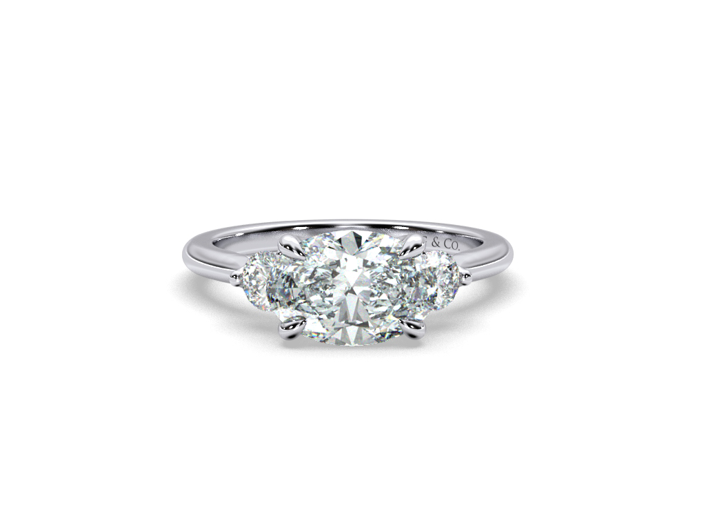 Bena Trilogy Oval cut Diamond East West Setting Round cut Side Stones - Platinum