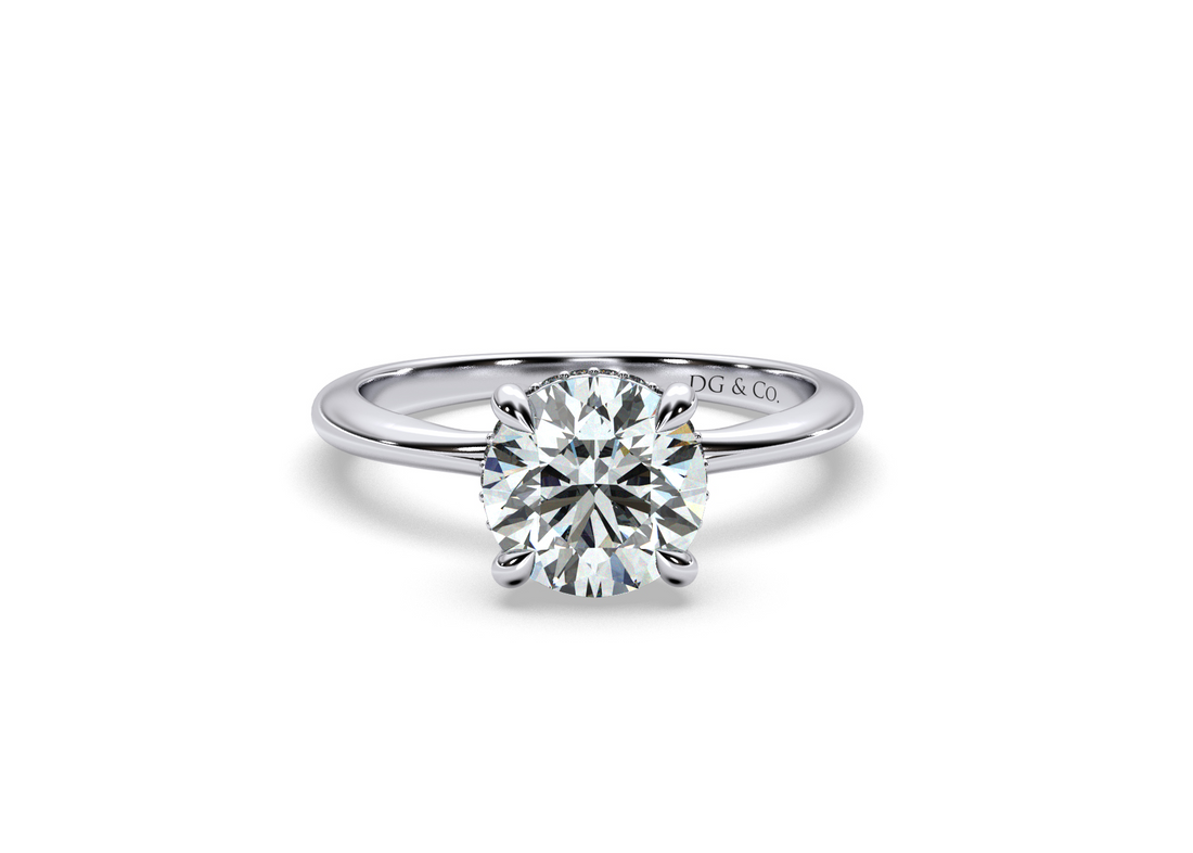 Norma Solitaire Hidden Halo Round Cut Fout Claw Setting Diamond Ring - Platinum