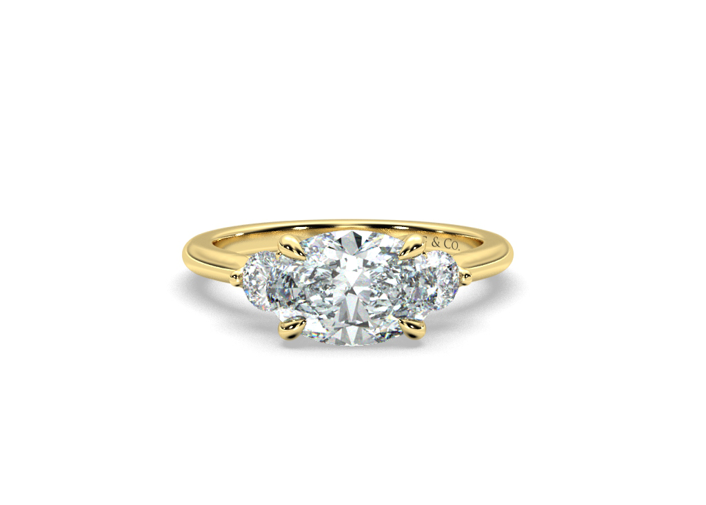 Bena Trilogy Oval cut Diamond East West Setting Round cut Side Stones - 18K Yellow