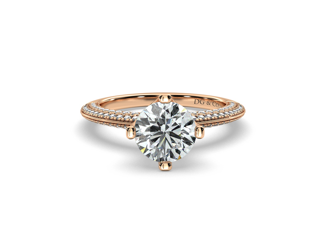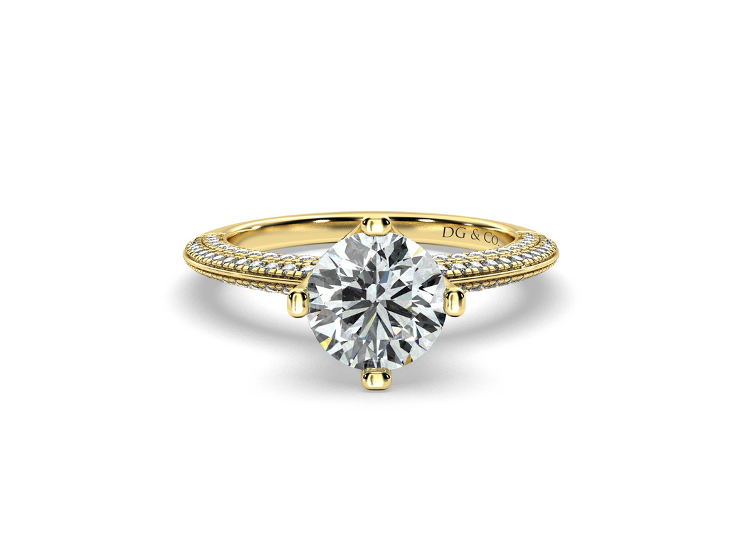 Round Cut Classic Solitaire Four Claws Diamond Engagement Ring with Micro Pave Set Prongs - 18K Yellow - DG & Co. Jewellery