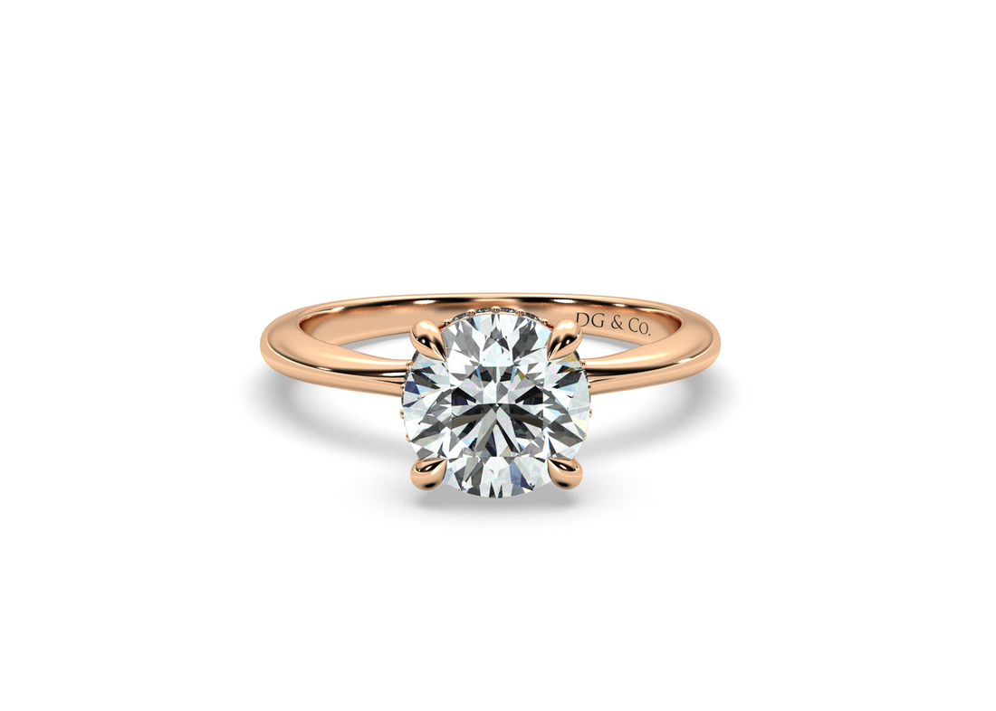 Norma Solitaire Hidden Halo Round Cut Fout Claw Setting Diamond Ring - 18K Rose