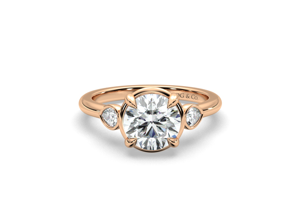 Sima Three stone Round Cut Bezel Four Claw Setting with Pear Shape Cut Side stones - 18K Rose
