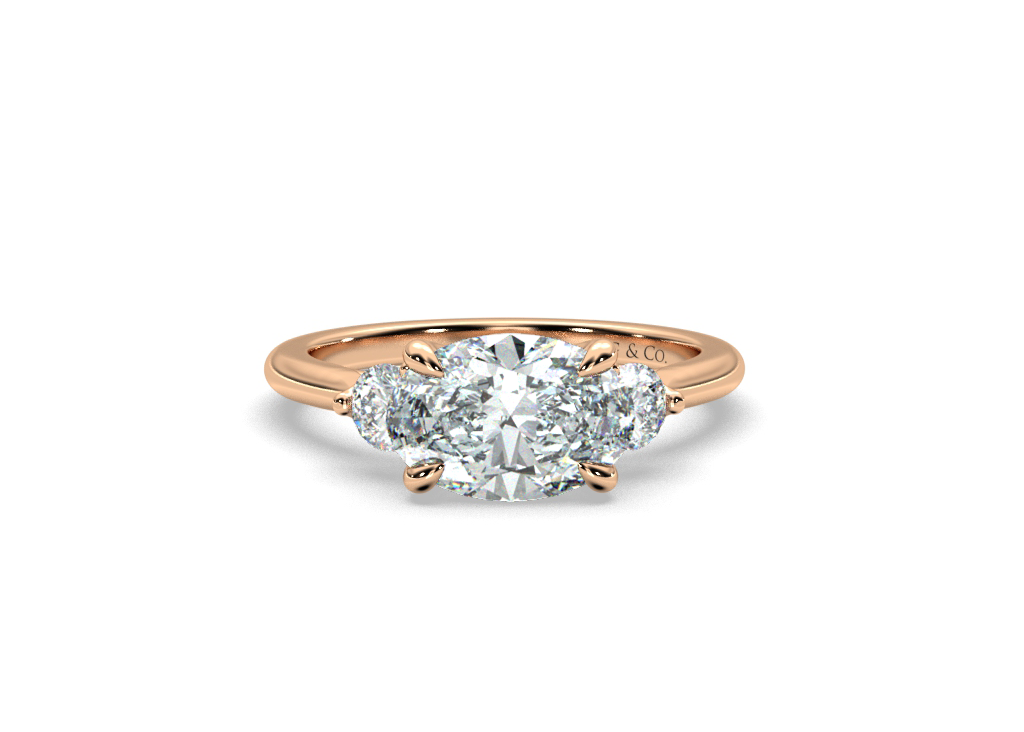 Bena Trilogy Oval cut Diamond East West Setting Round cut Side Stones - 18K Rose