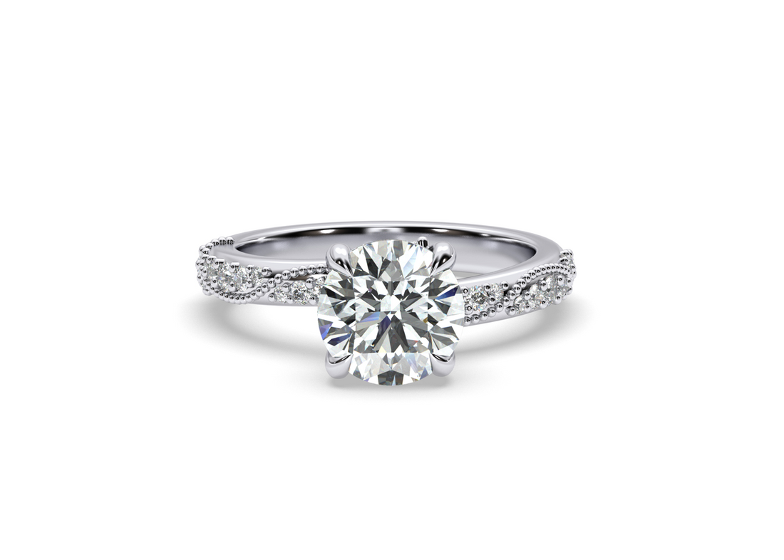 Lanna Vintage Style Hidden Halo Milgrain Round Cut Diamond Ring - 18K White