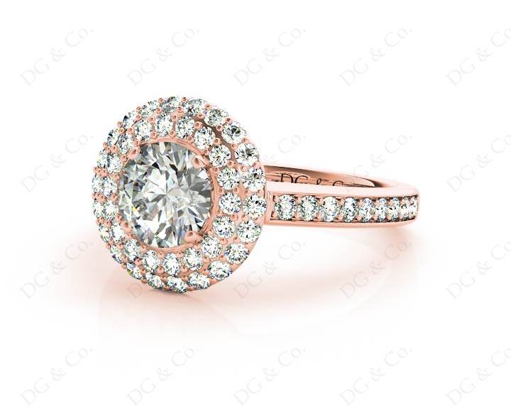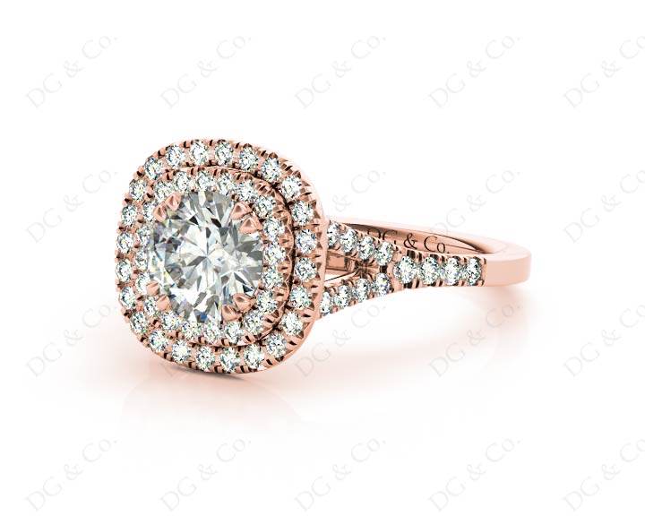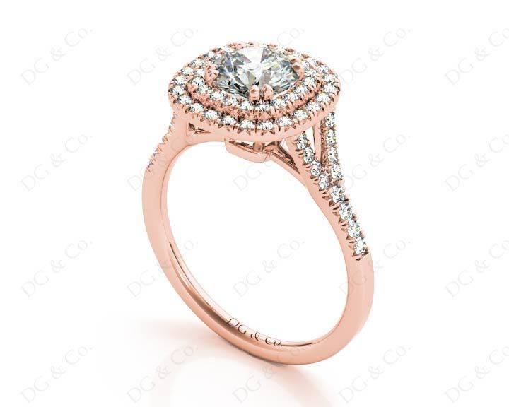 Round Cut Split Shank Diamond Engagement Ring with Double Halo and Pave Set Side Stones in 18K Rose - DG & Co. Jewellery