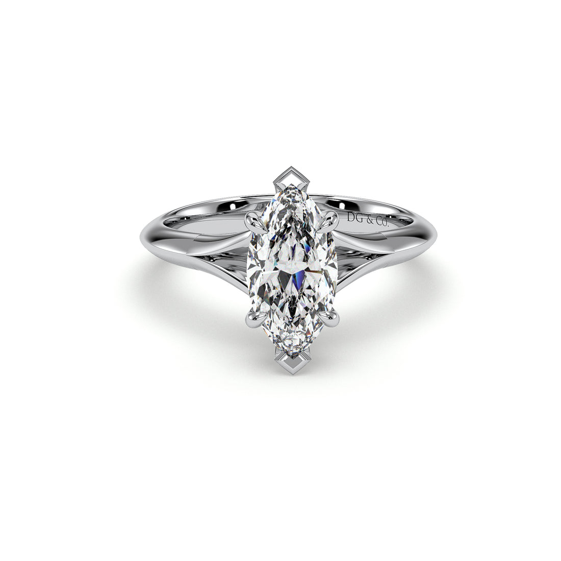 Stella Marquise Cut Six Claw Hidden Halo Split Band Diamond Engagement Ring  - Platinum