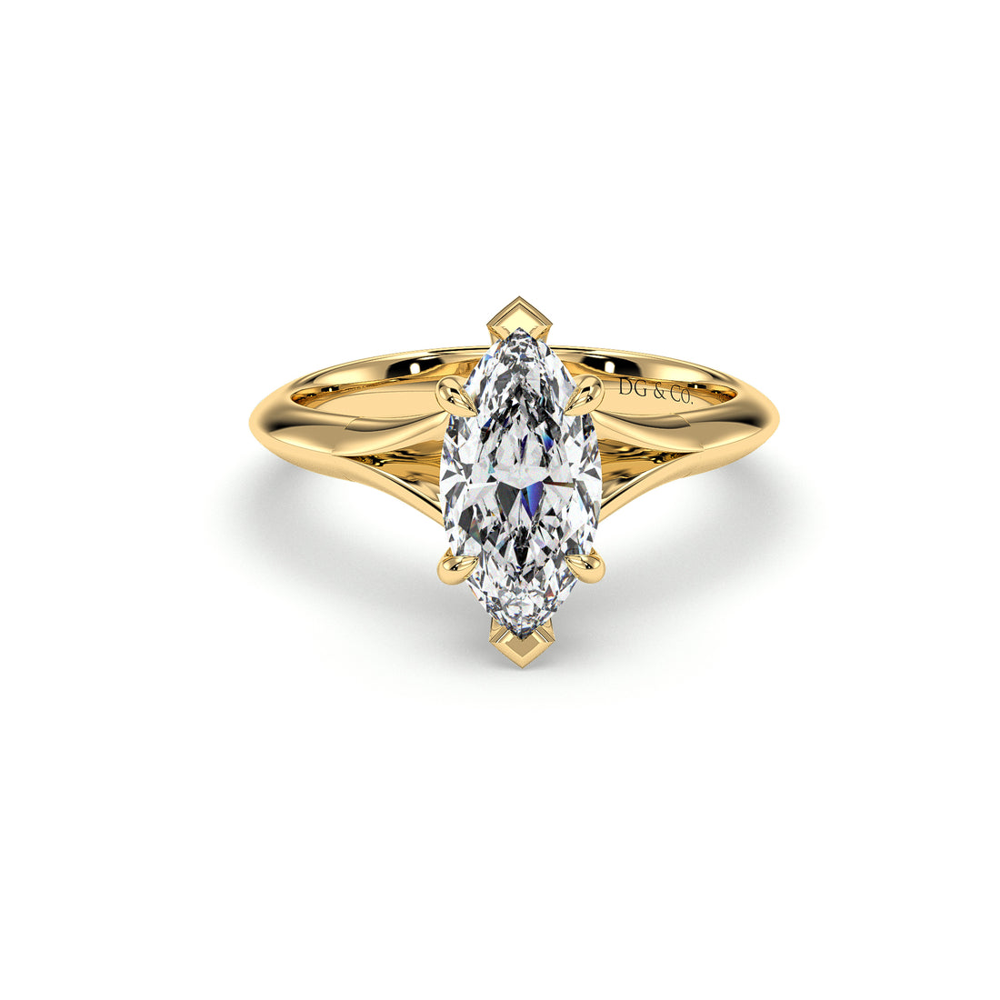 Cove Marquise Cut Hidden Halo Pave Setting Six Claw Diamond Ring - 18K Yellow