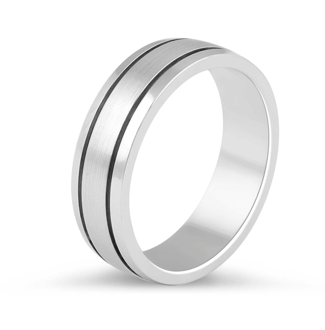 Brushed Inlay Milgrain Gents Wedding Ring in 18K White - DG & Co. Jewellery
