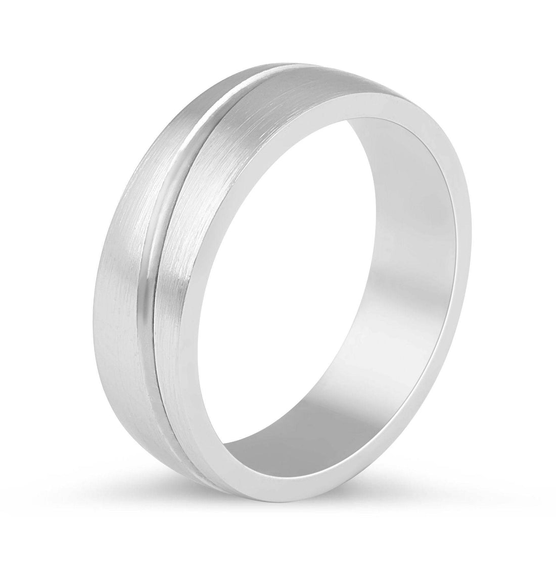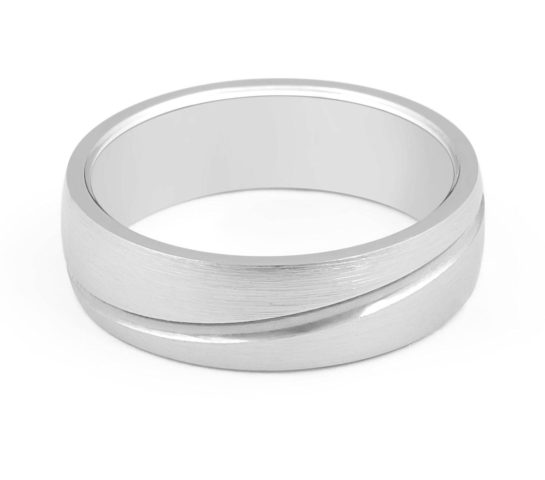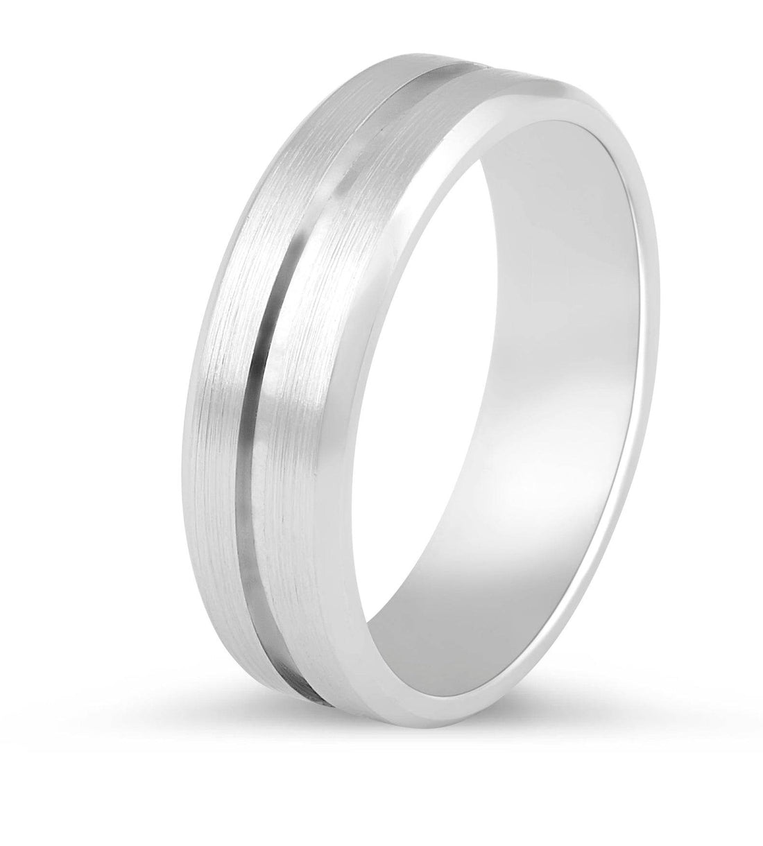 Modern brushed wedding ring with polished bevelled edges - 9K White - DG & Co. Jewellery