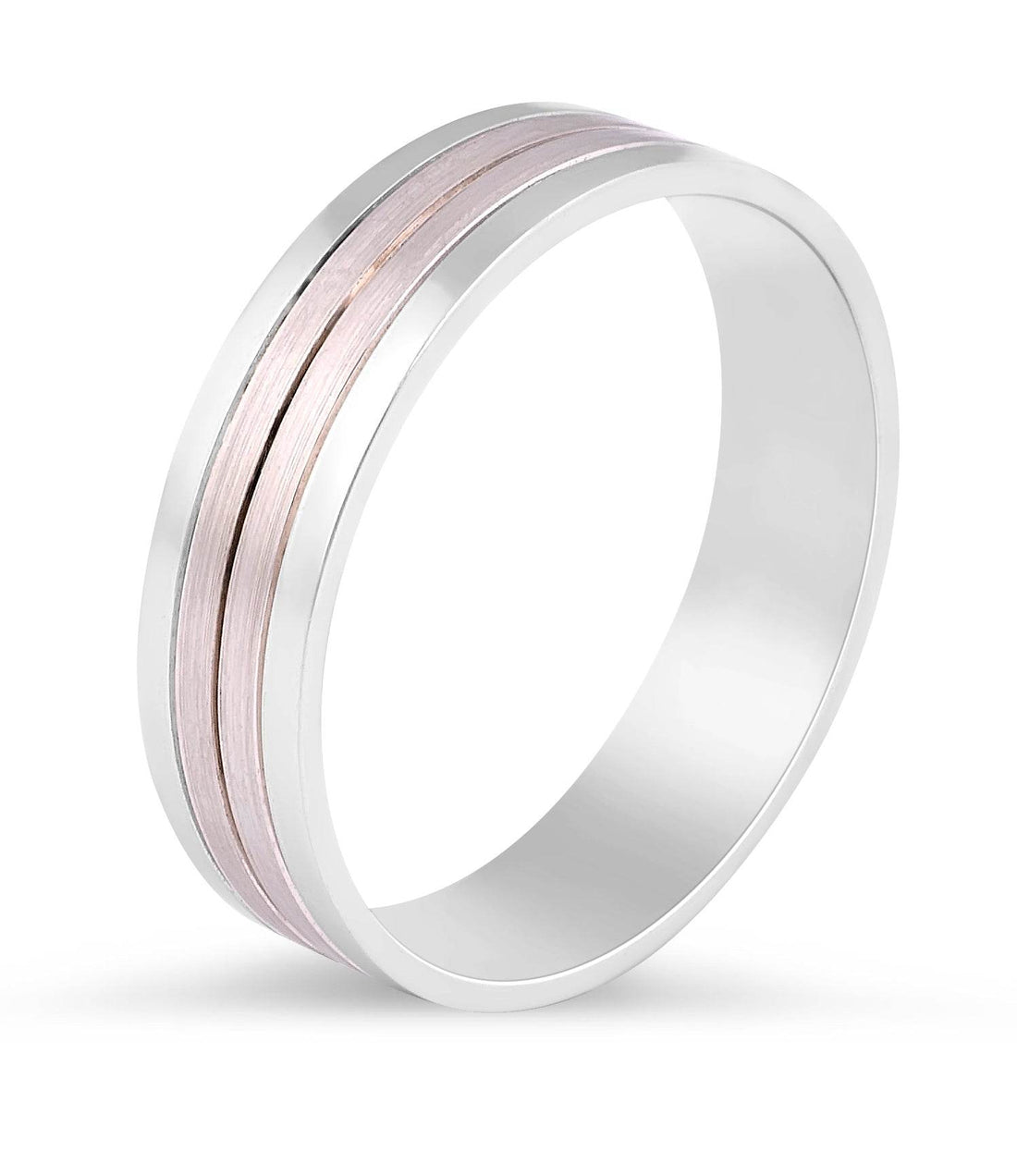 6.00MM 9K Rose and White Gold Wedding Band with Inlay Detail and combination of polished and brushed metal - DG & Co. Jewellery