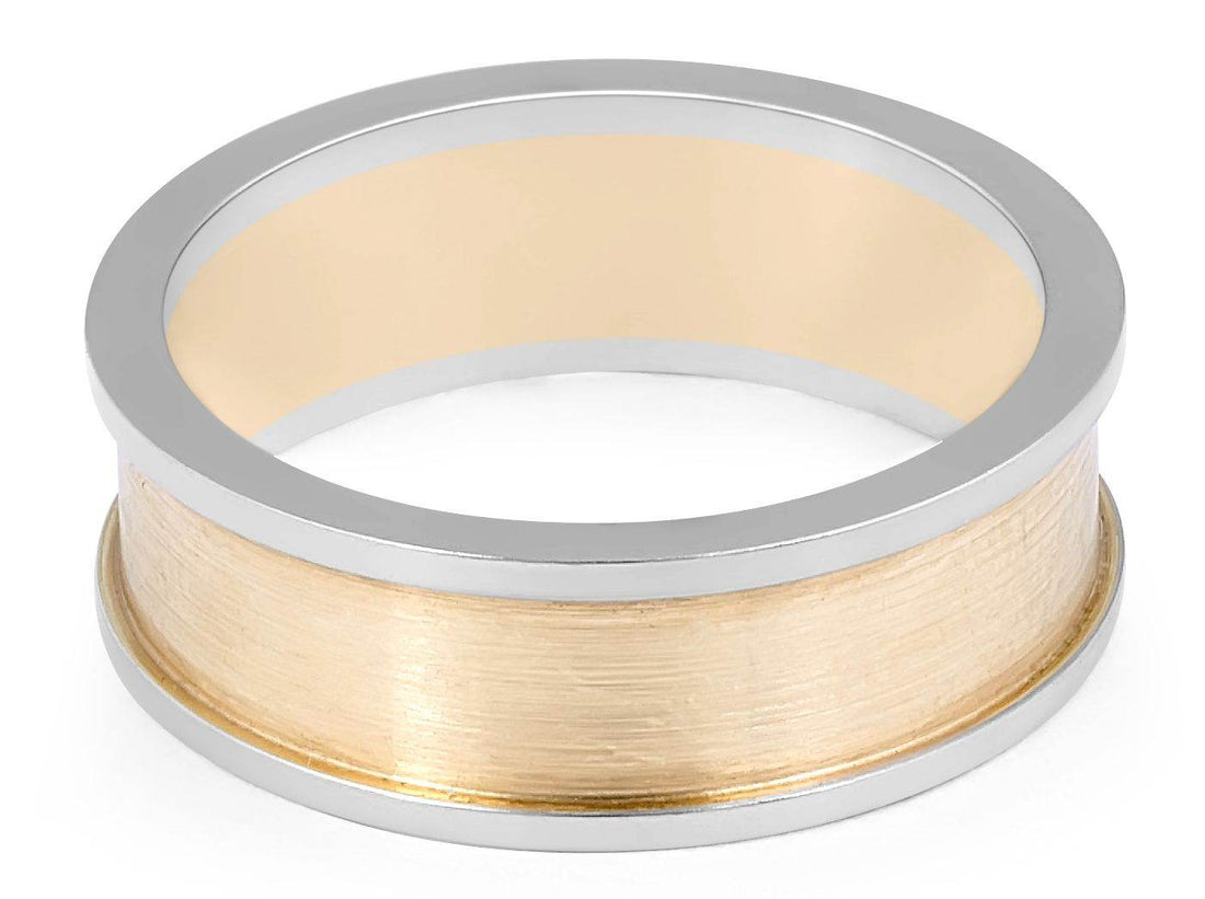 7.00MM 18K White and Yellow Gold Brushed Inlay Gents Wedding Ring - DG & Co. Jewellery