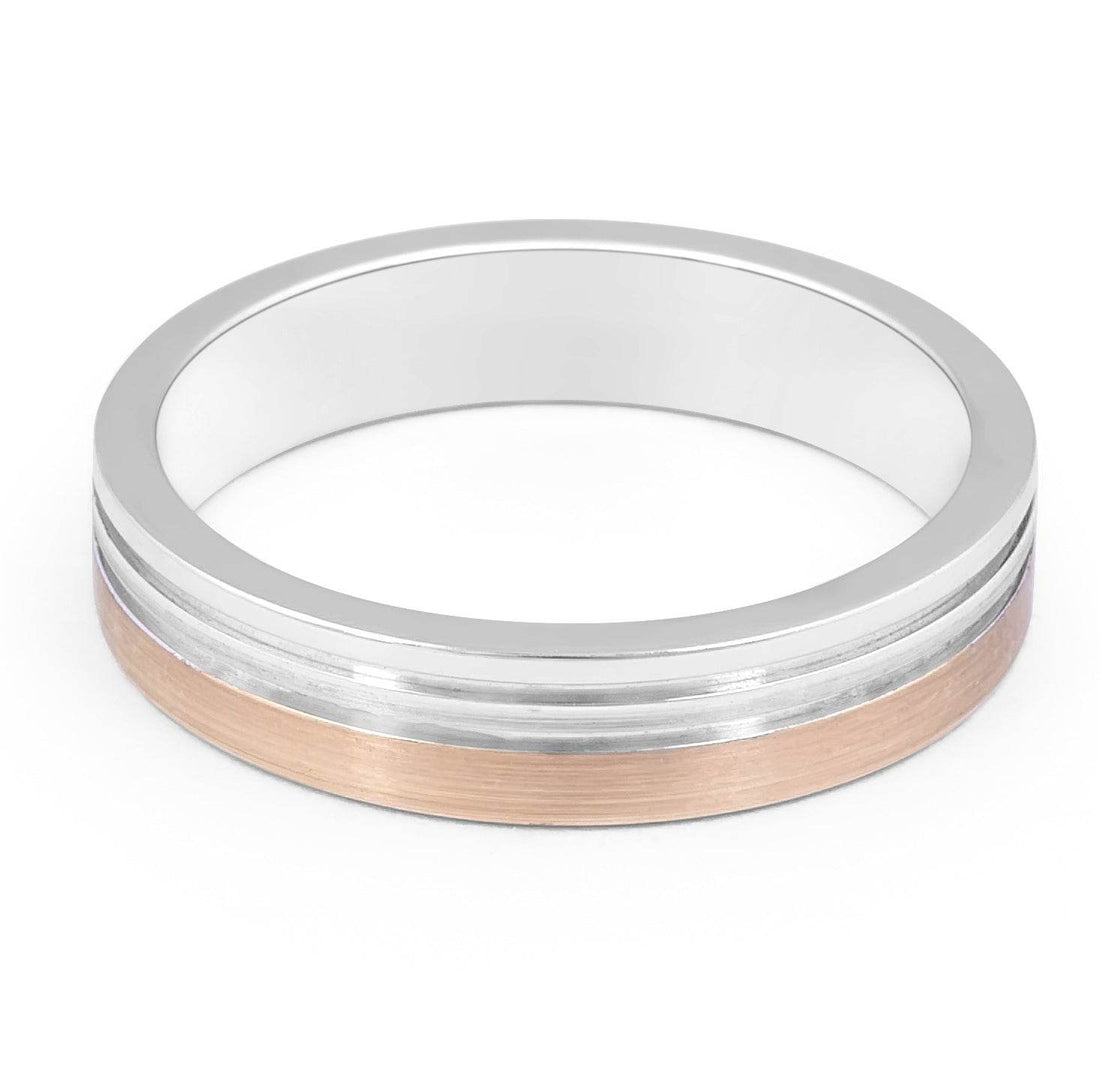 18 Karat 2 tone White and Rose Gold Gents Wedding Band with Emery Finish - DG & Co. Jewellery