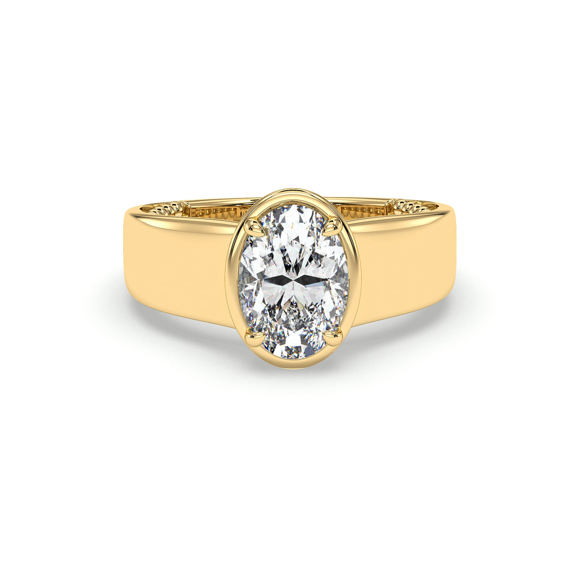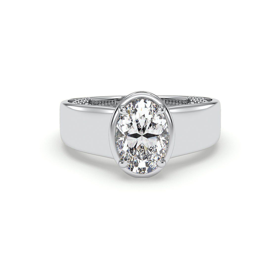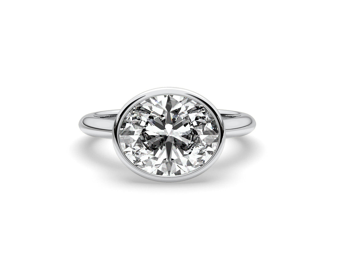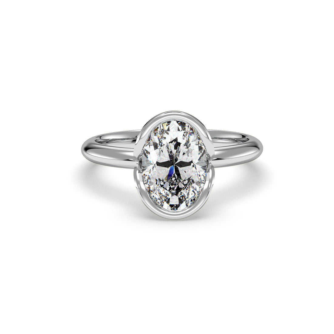 • Oval bezel engagement ring – smooth, secure, modern