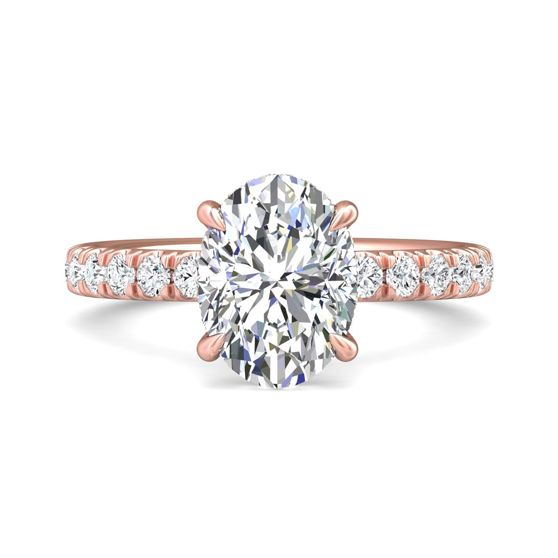 Winslow Oval Cut Hidden Halo Four ClawPave Setting Diamond Engagement Ring - 18K Rose