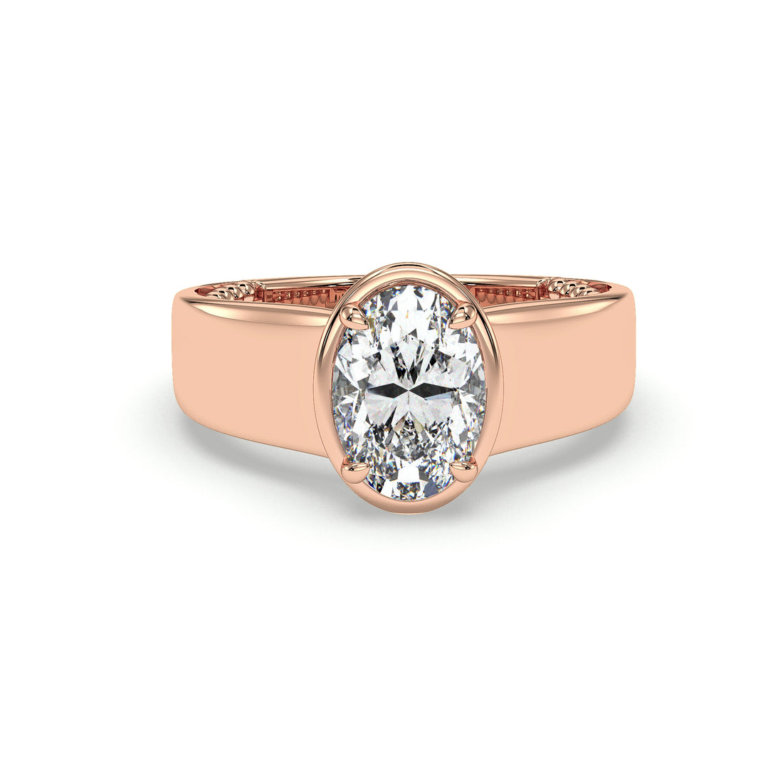 Shae Oval Cut Bezel Setting Solitaire Diamond Engagement Ring - 18K Rose