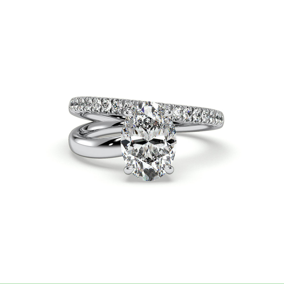 • Oval split shank engagement ring – adds width and drama