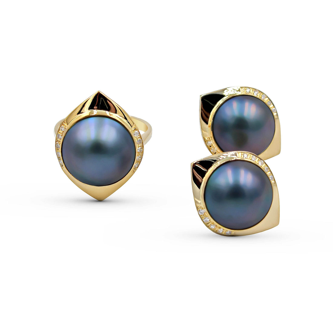 14K Yellow Gold Diamond Grey Black Mabe Pearl Ring - DG & Co. Jewellery