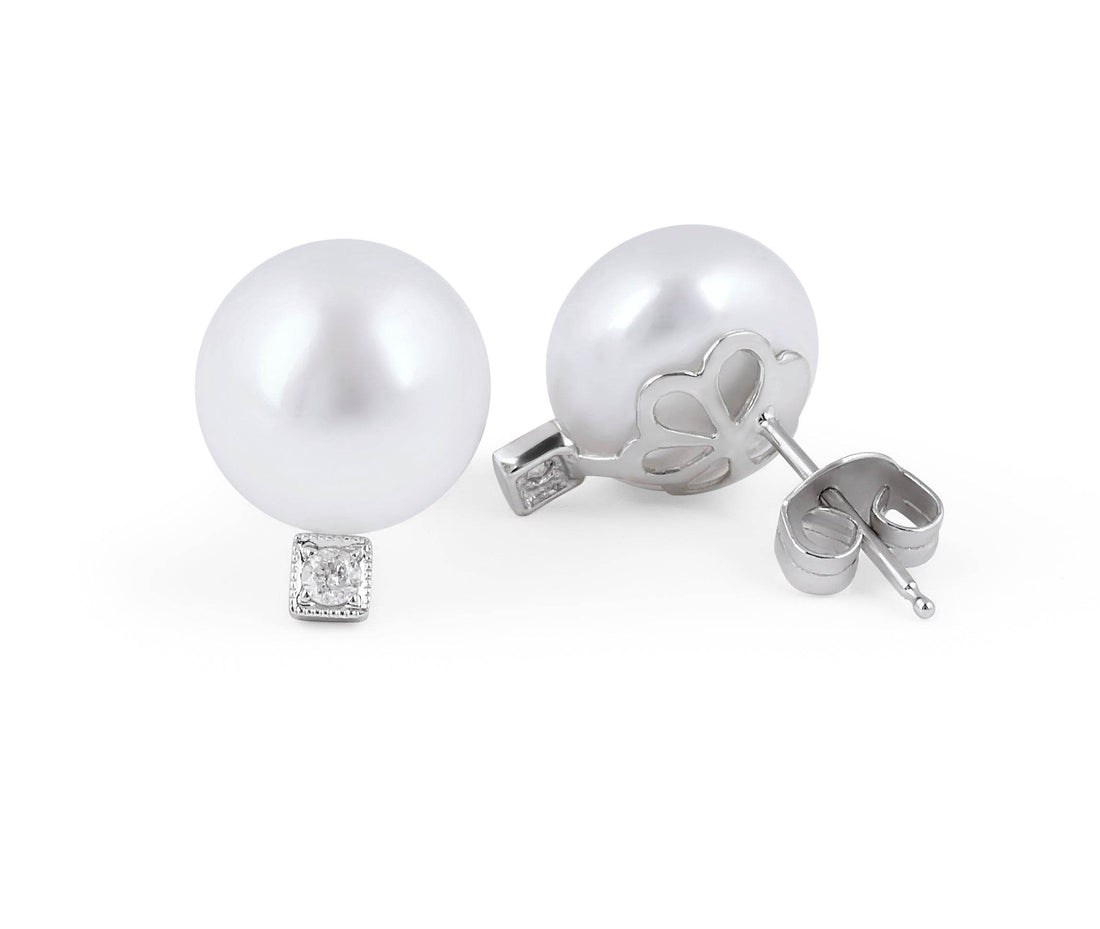 (9mm) South Sea Pearl Stud Earrings In 18K White Gold - DG & Co. Jewellery