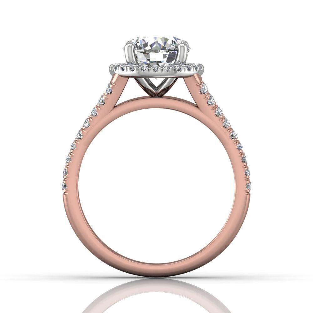 Split Band Round Cut Halo Diamond Engagement ring with claw set centre stone in 18K Rose - DG & Co. Jewellery
