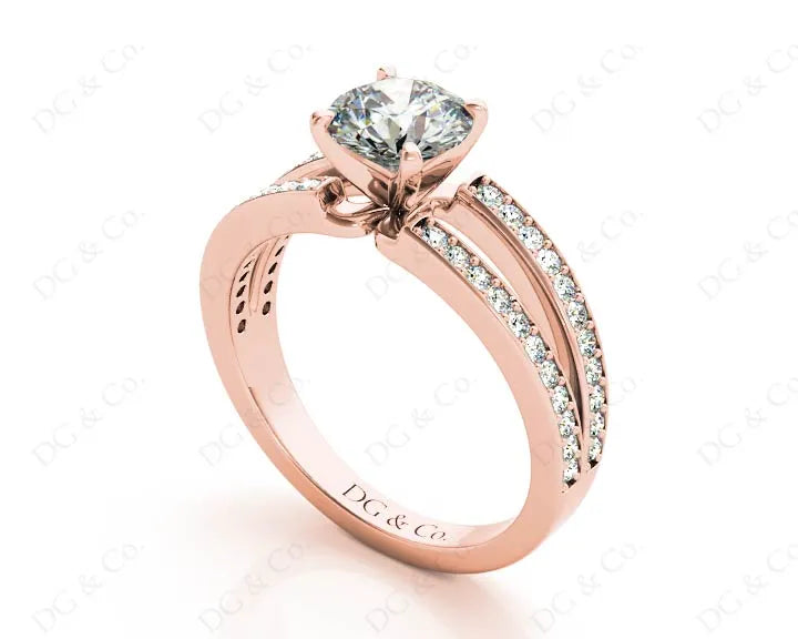 Split Band Round Cut Diamond Ring with Four Claws set centre stone - 18K Rose - DG & Co. Jewellery
