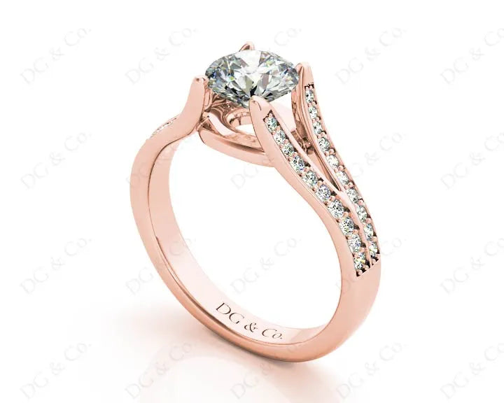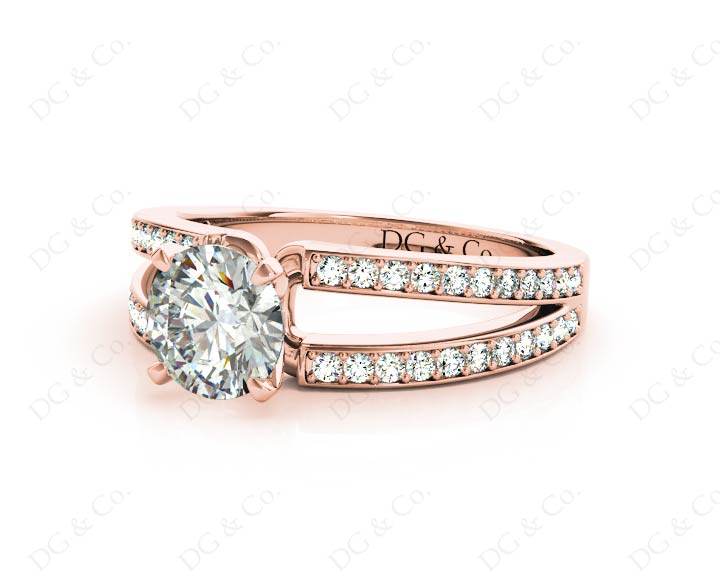Round Cut 4 Claw Split Shank Engagement Ring with Grain Set Side Stones - 18K Rose - DG & Co. Jewellery