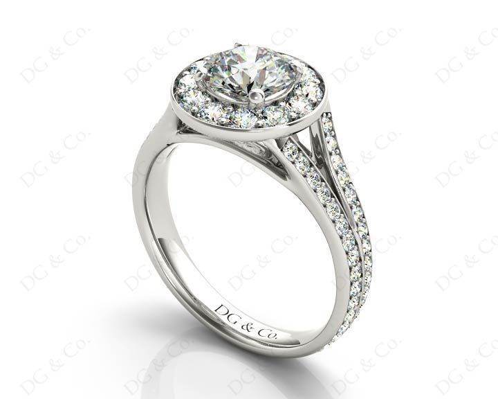 Round Cut Split Band Halo Diamond Engagement Ring With Four Claw Setting Centre Stone-Platinum - DG & Co. Jewellery