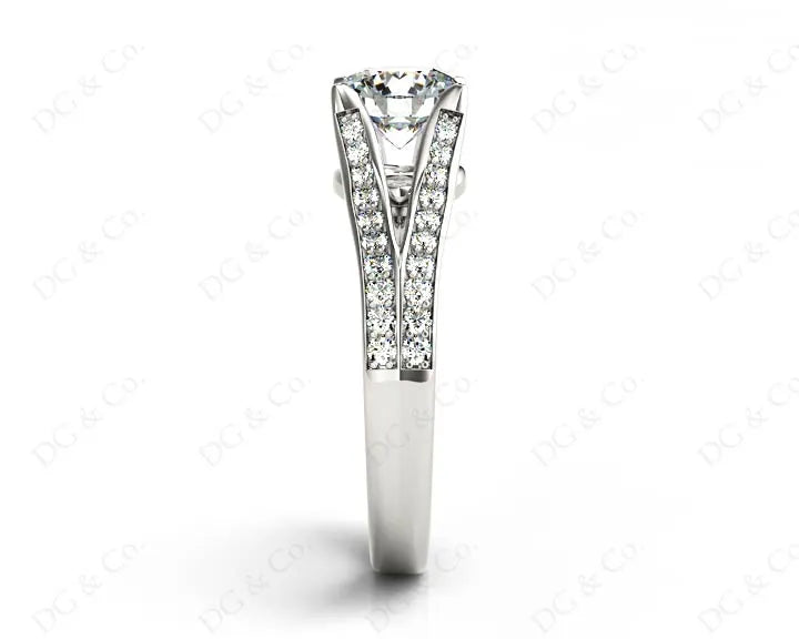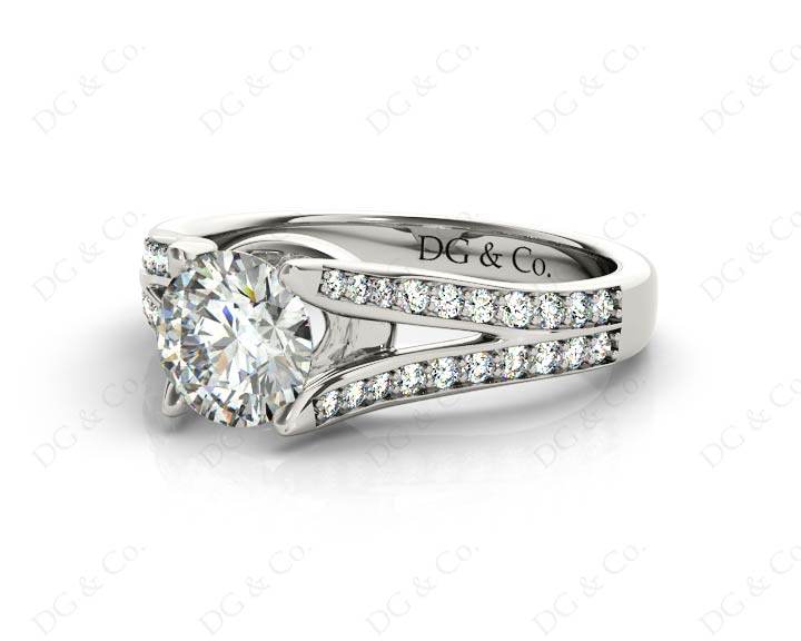 Round Cut 4 Claw Split Shank Engagement Ring with Grain Set Side Stones - Platinum - DG & Co. Jewellery