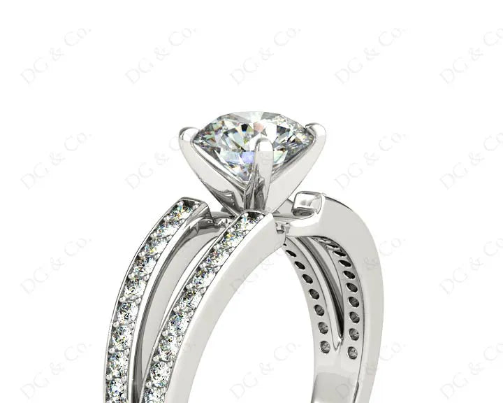 Round Cut 4 Claw Split Shank Engagement Ring with Grain Set Side Stones - 18K White - DG & Co. Jewellery