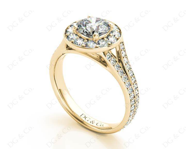 Round Cut Split Band Halo Diamond Engagement Ring With Four Claw Setting Centre Stone-18K Yellow - DG & Co. Jewellery