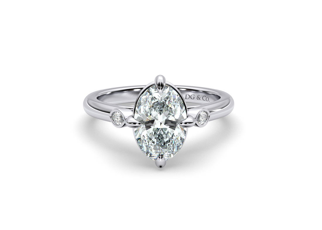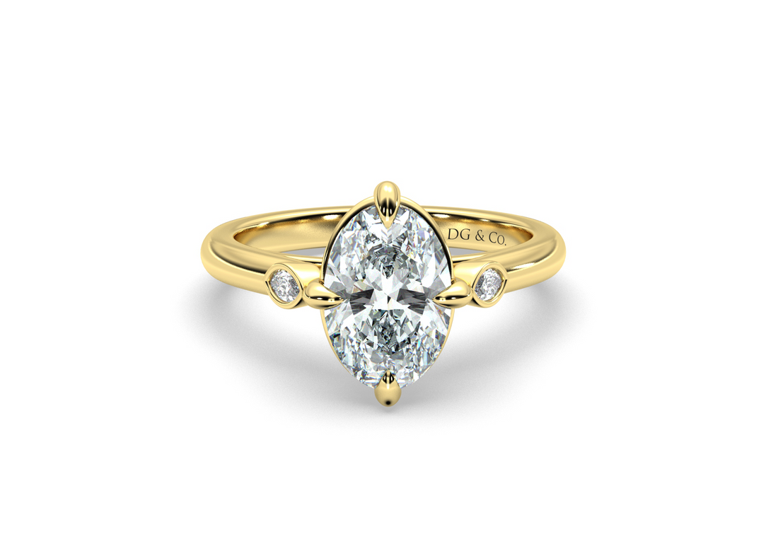 There are 3 main setting options for Three Stone Engagement Rings: Prong, Bezel and tension settings. Prong settings are the most popular setting for Three Stone Engagement Rings, 4,6 and 8 prong variations are the most common amount of prongs used for three stone styles. Bezel settings also come in a full bezel, and half bezel alternatives, bezel options are the safest option, and are a great choice for those who are clumsy and prone to damaging their ring. Tension settings are another option when choosing a setting for Three Stone, and are very unique, but only certain shapes can be set in a tension setting. All of these settings can be set higher, or lower in the ring, but both carry pros and cons. The perfect setting for you comes down to your preference, and weighing up the benefits of the different settings.