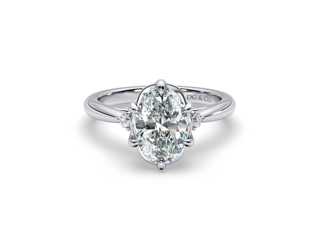 Three stone engagement rings otherwise known as trilogy engagement rings are characterised by one centre stone and two accompanying stones. The two accompanying stones typically the same size or smaller than the centre stone in a three stone style. The three stones in your engagement ring can have many different meanings, but it’s commonly interpreted as the ‘past, present and future’ of the couple's relationship.