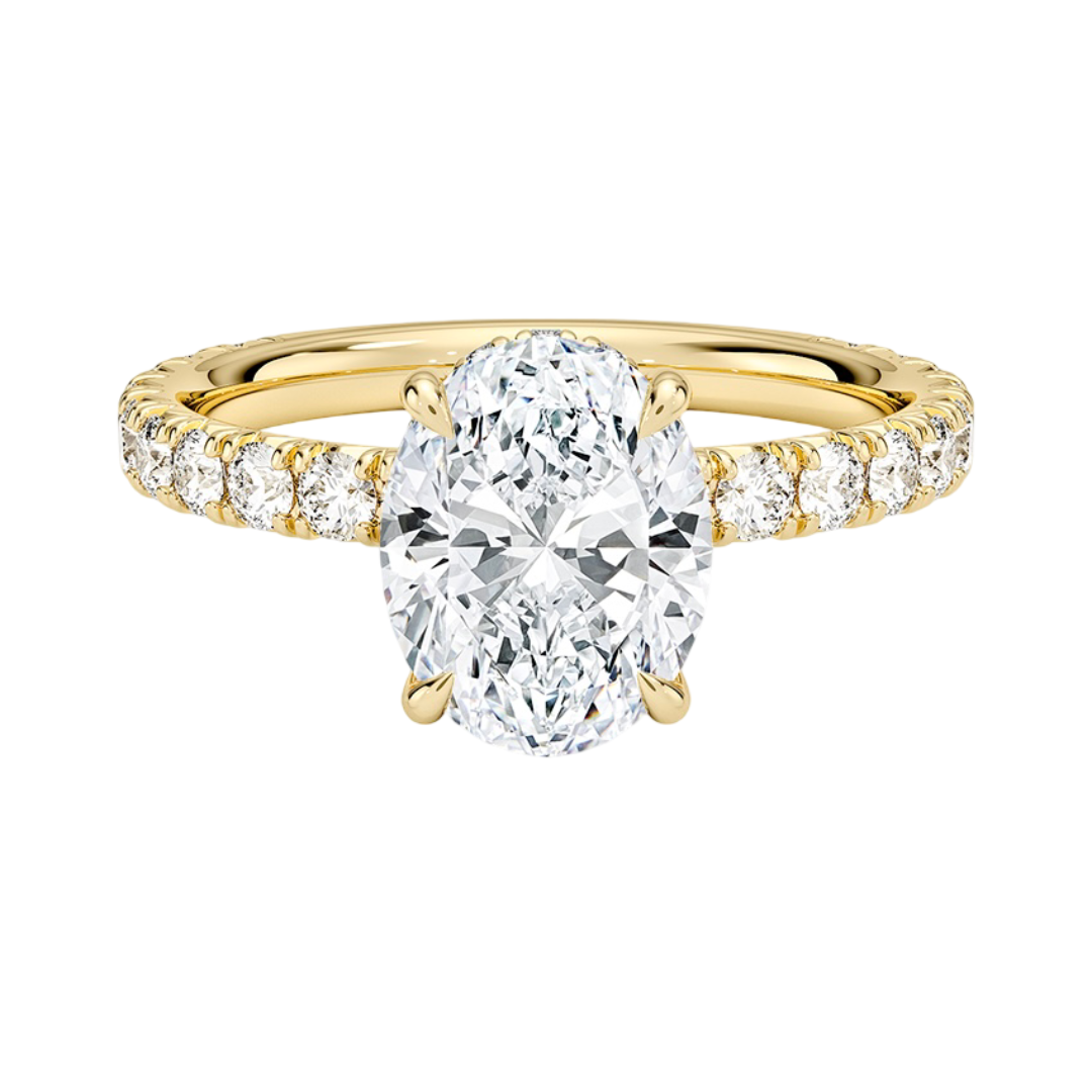 Zoe Oval Cut Hidden Halo 3/4 Pave Setting Diamond Ring - 18K Yellow