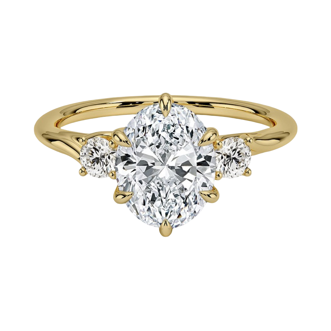 Lotus Three Stone Oval Cut Cathedral Setting Diamond Engagement Ring Four Prong - 18K Yellow