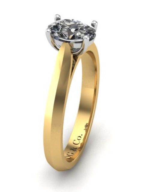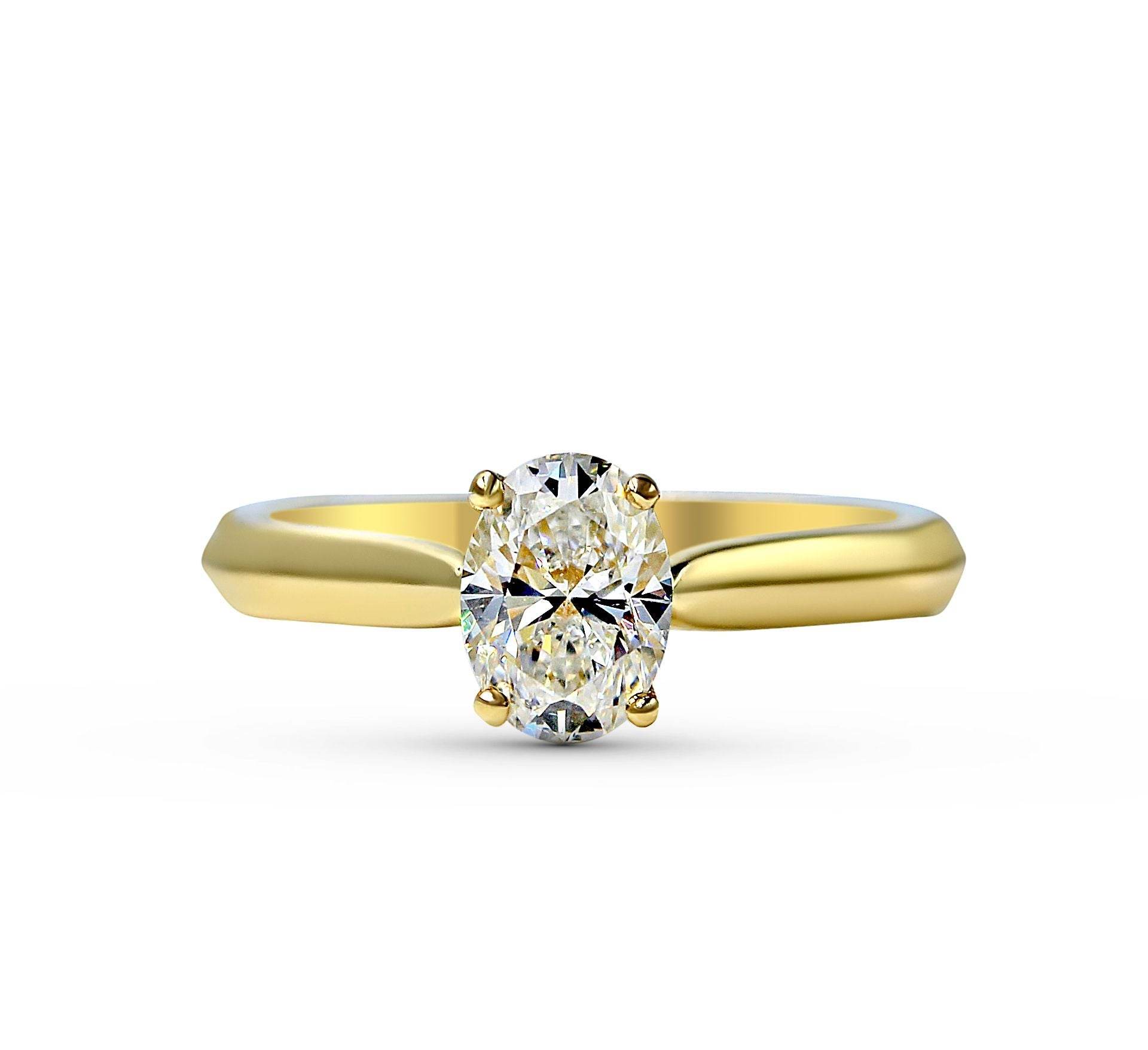 Elegant in simplicity, this beauty solitaire diamond engagement ring is crafted in polished 18k yellow and white gold to create a classic frame for your centre oval brilliant cut diamond.