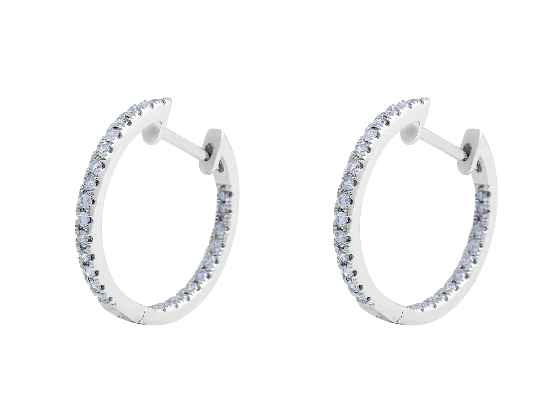 A timeless 18 Karat white gold diamond loop earrings set with 30 round sparkling diamonds in Pave setting. An elegant earring which can be worn to suit any occasion.
