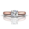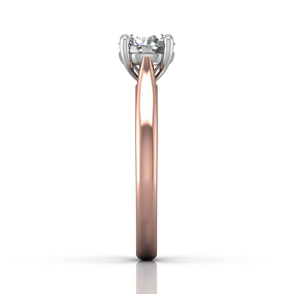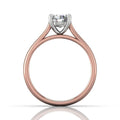 This elegant tapered cathedral solitaire is a timeless engagement ring design. Crafted in enduring 18k rose and white gold, the contoured shoulders perfectly frame your choice of centre diamond.