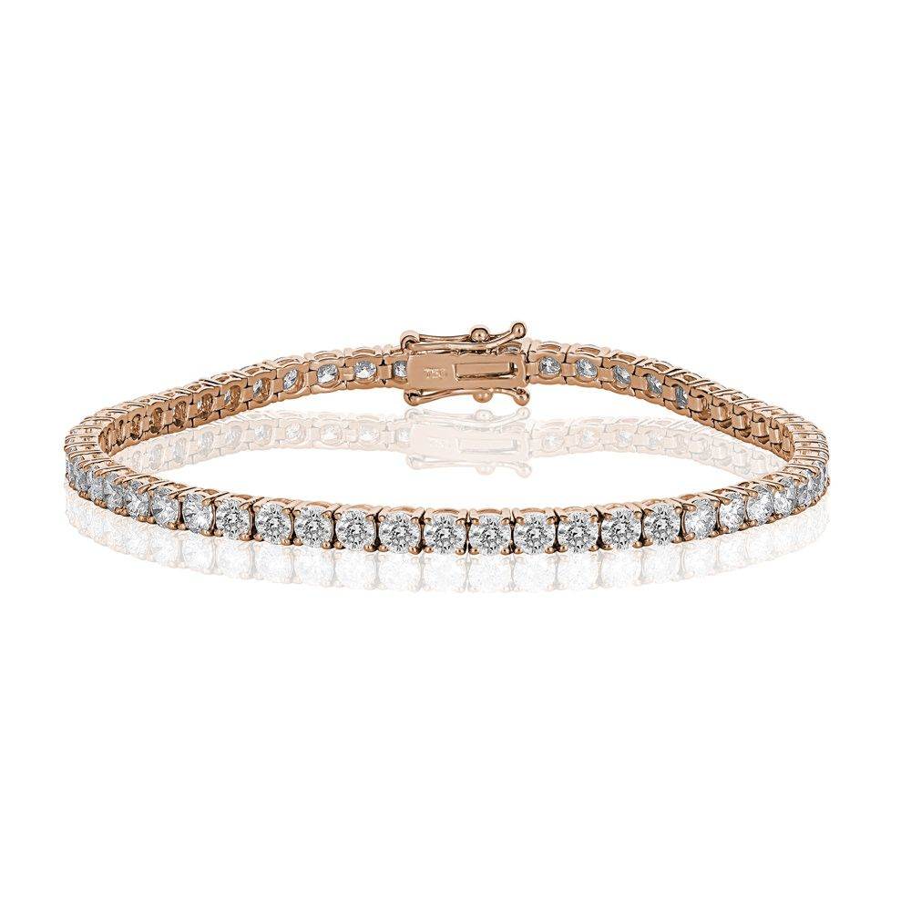 Flash your brilliant style with an infinitely wearable classic! This tennis bracelet showcases round diamonds claw-set in complementing 18k rose white gold. Wear this all-occasion dazzler securely with a box clasp with safety.