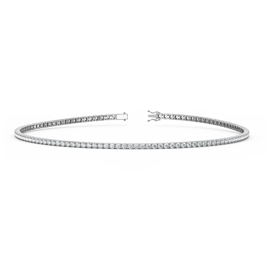 Flash your brilliant style with an infinitely wearable classic! This tennis bracelet showcases round diamonds claw-set in complementing 18k white gold. Wear this all-occasion dazzler securely with a box clasp with safety.