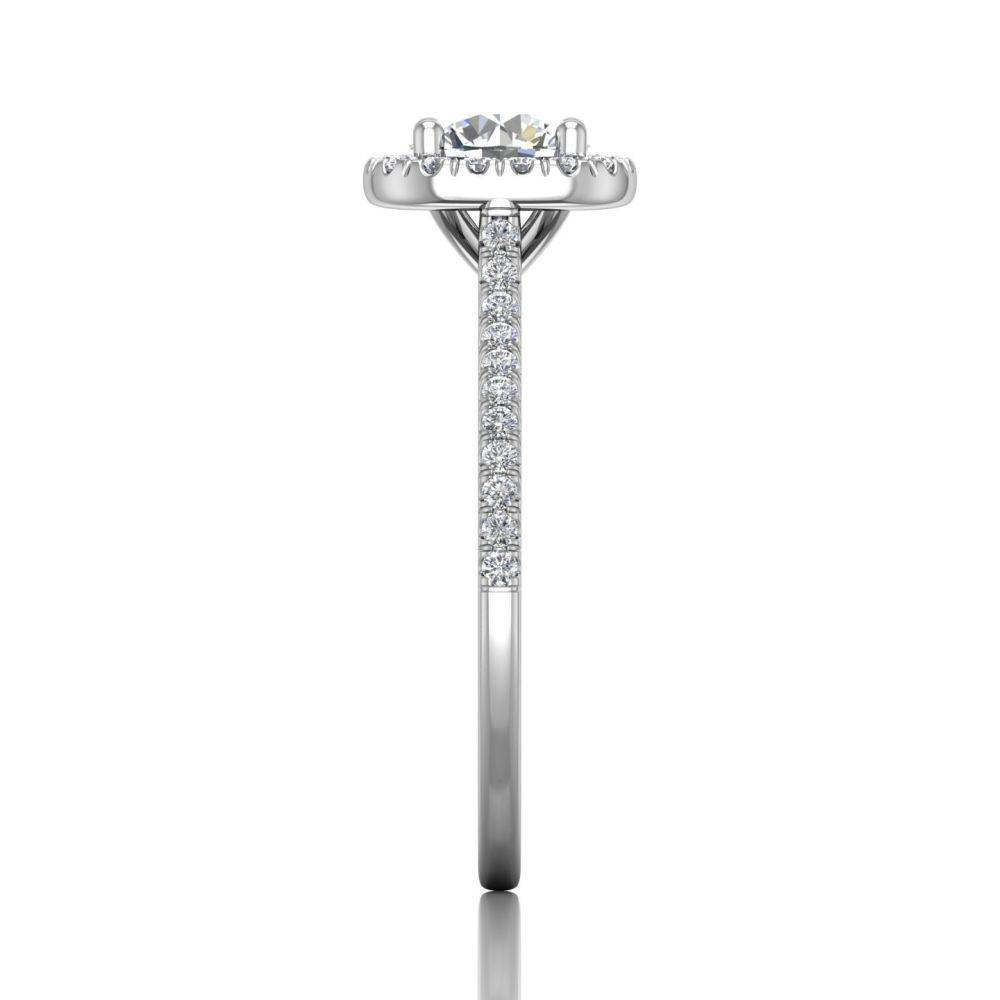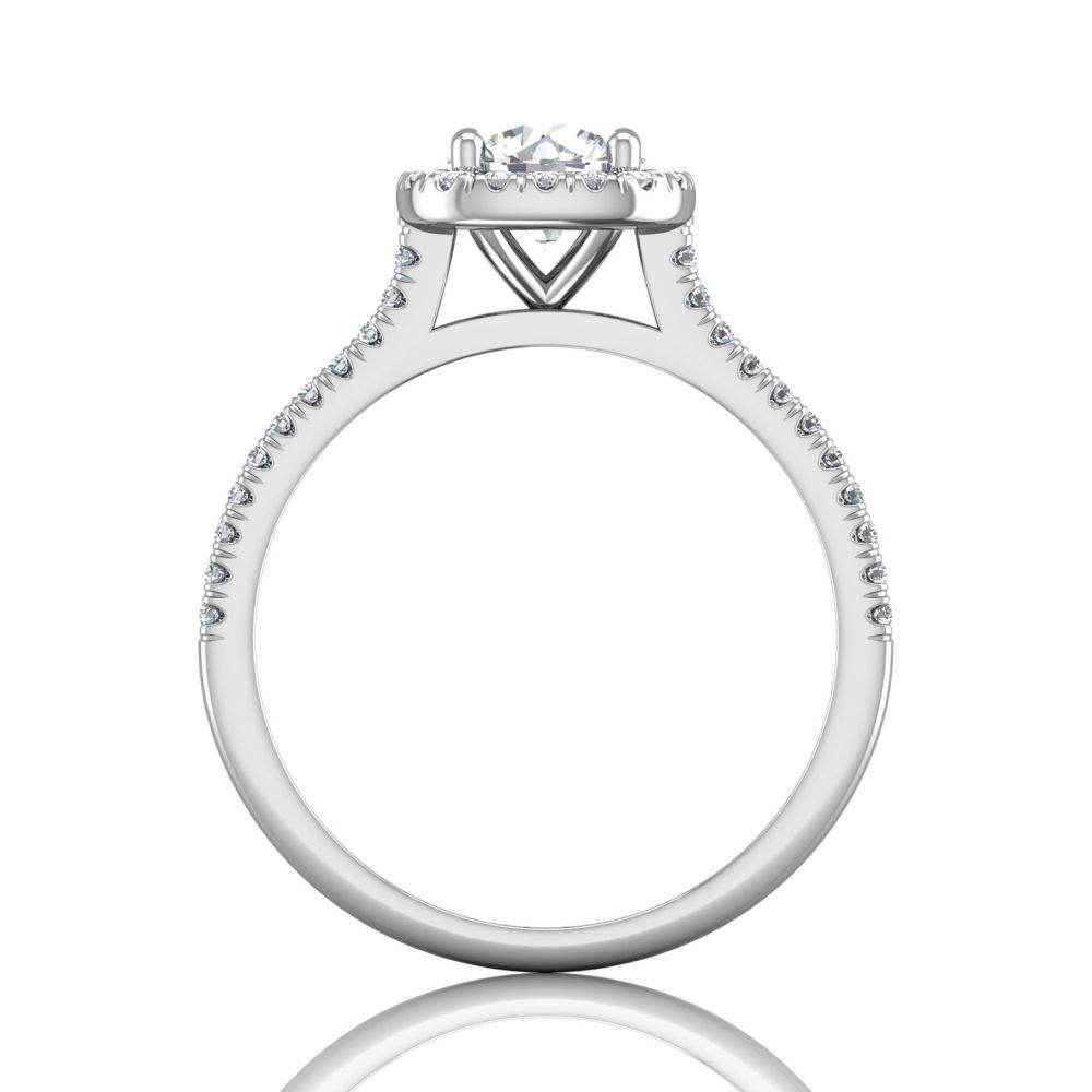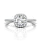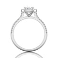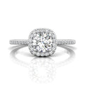 Delicate in design, this diamond engagement ring showcases a cushion halo of pave diamonds to frame the diamond of your choice set in enduring 18K white gold.