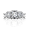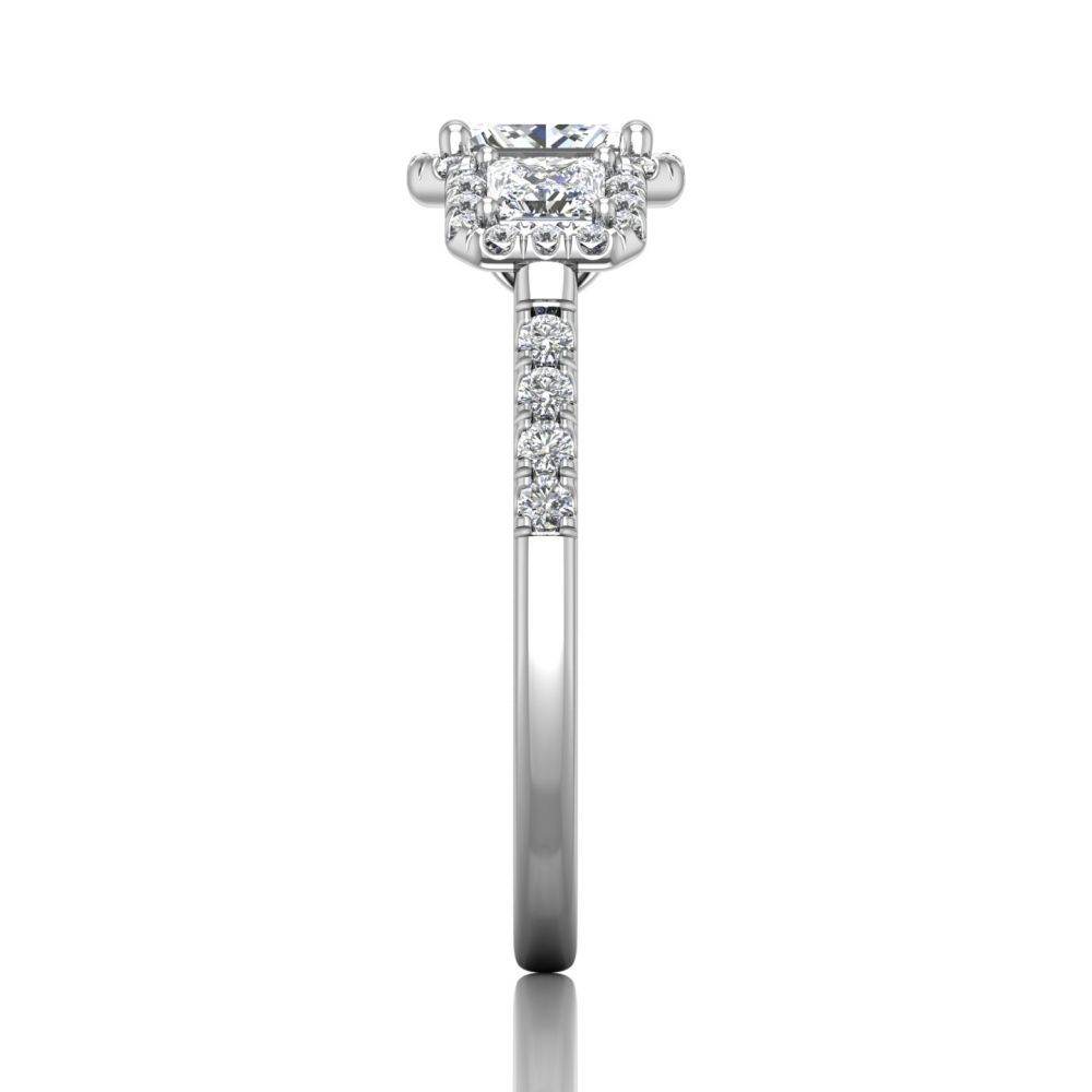 Princess Cut Halo and Three Stone Engagement Ring with Pave Side Stones in 18k White Gold - DG & Co. Jewellery