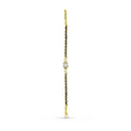 This 18K Yellow gold vintage-inspired Akoya Cultured Pearl bracelet features a V shape of rose cut diamonds decorative to surrounding the centre pearl, as well it got a double clasp safety. Gold weight 12.1 Grams.