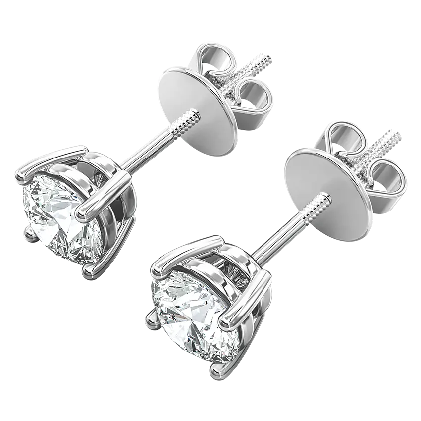 Beautifully matched, these lab grown diamond stud earrings feature round cut diamonds in four-prong settings and has screw on posts and butterfly style fitting attached.