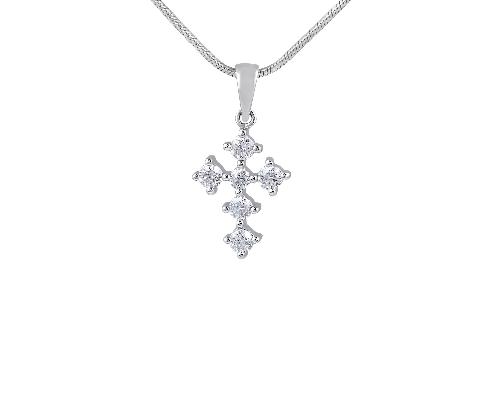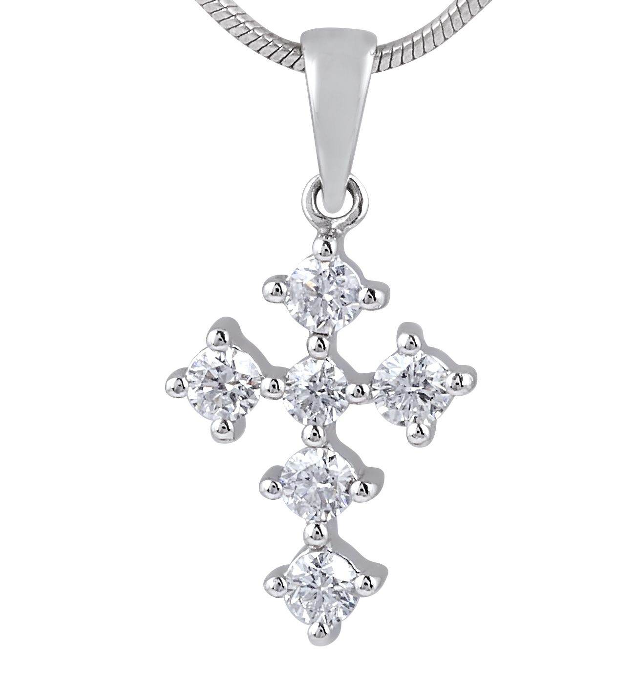 Beautifully crafted, this petite diamond pendant features round diamonds set in a dainty cross design of 18 Karat white gold.