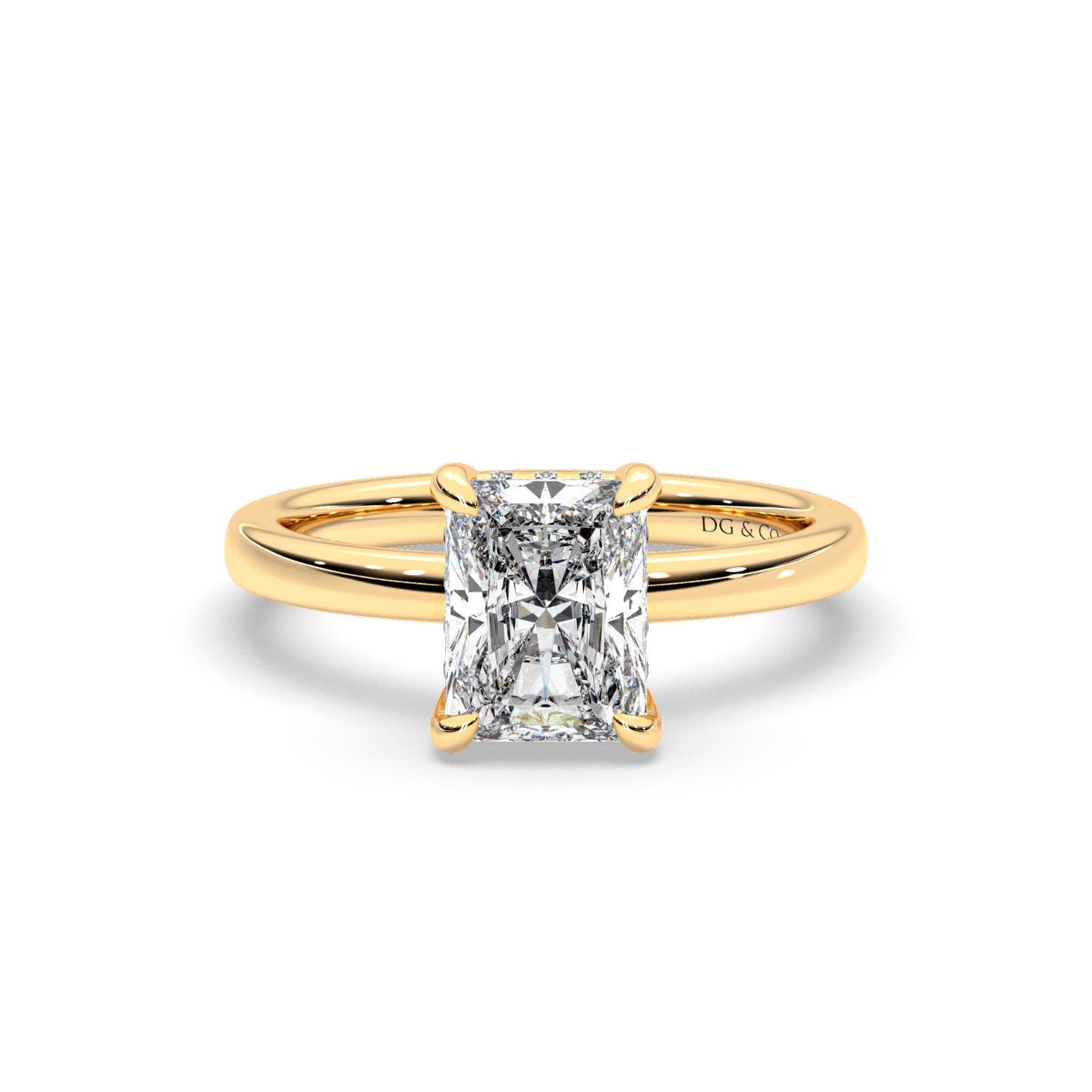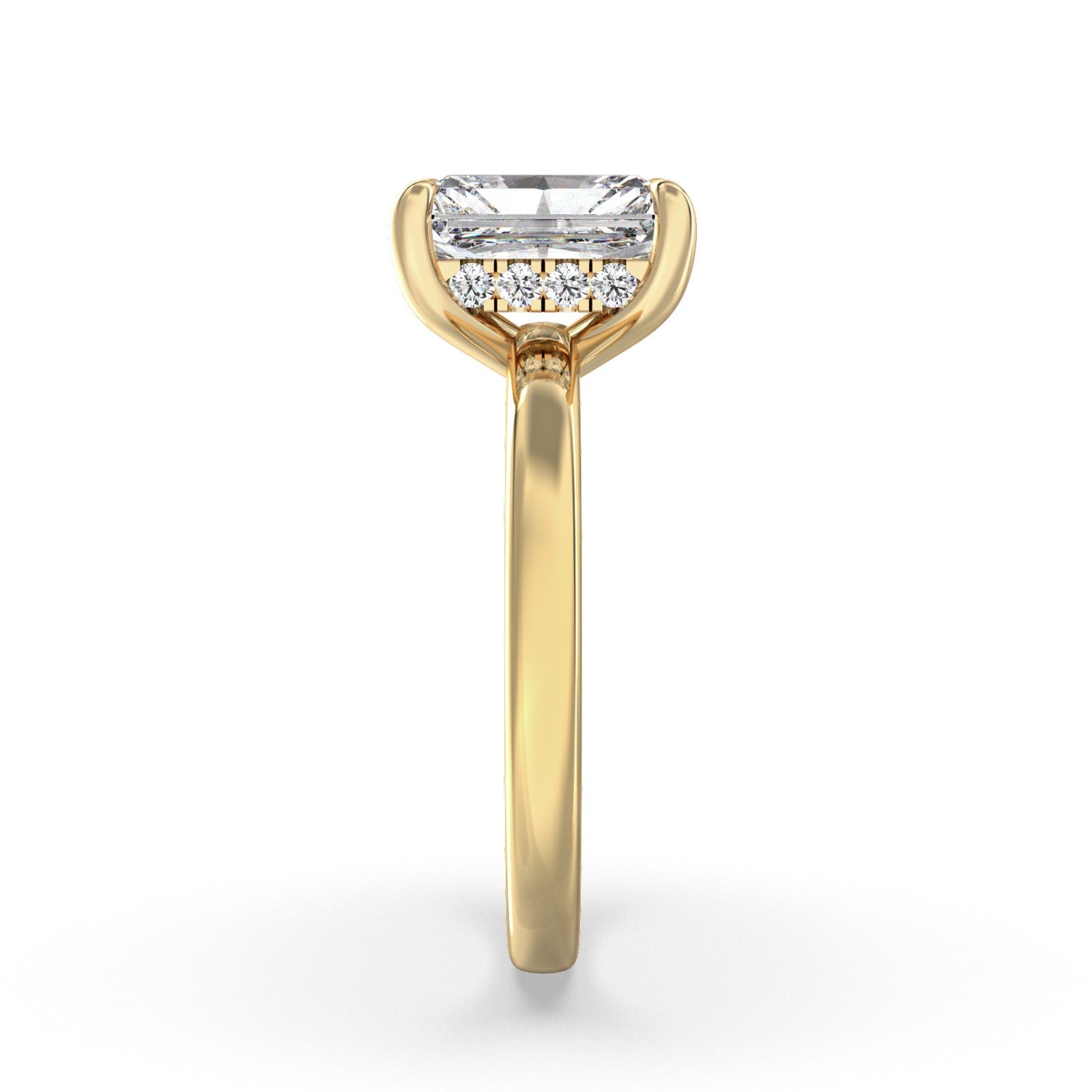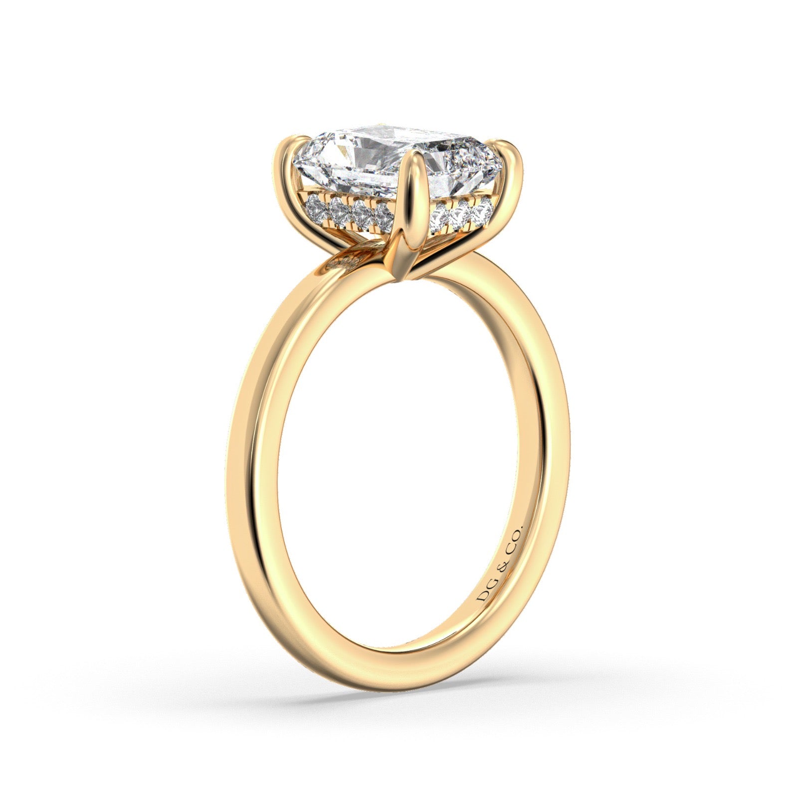 Elegant in its simplicity, this Radiant Cut solitaire crafted beautifully with a classic hidden halo frame for your choice of center diamond size.