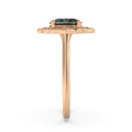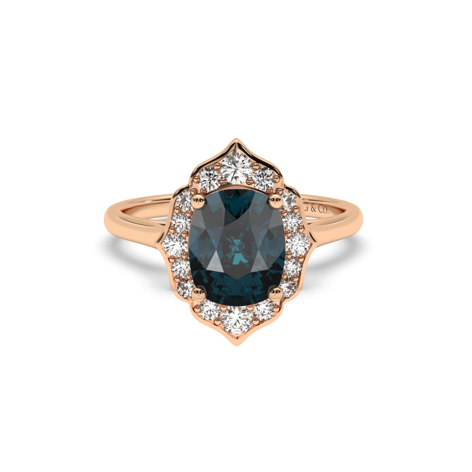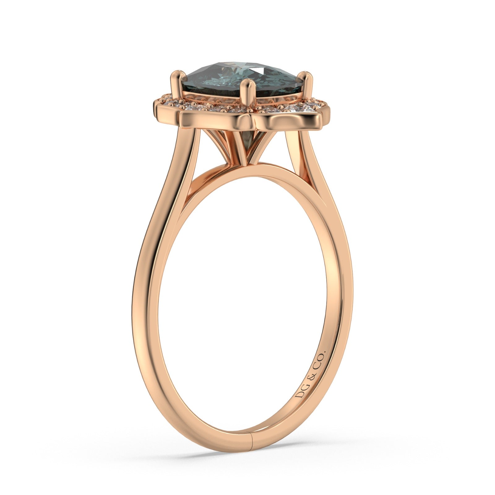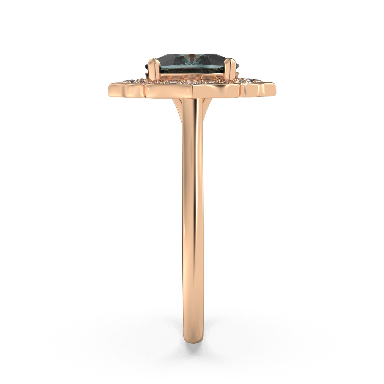Bring gorgeous shimmer to your style as you wear this stunning ring featuring an oval-cut teal blue sapphire at its heart, surrounded by accent diamond petals. It is designed in 18k gold that promises enduring luxurious quality.
