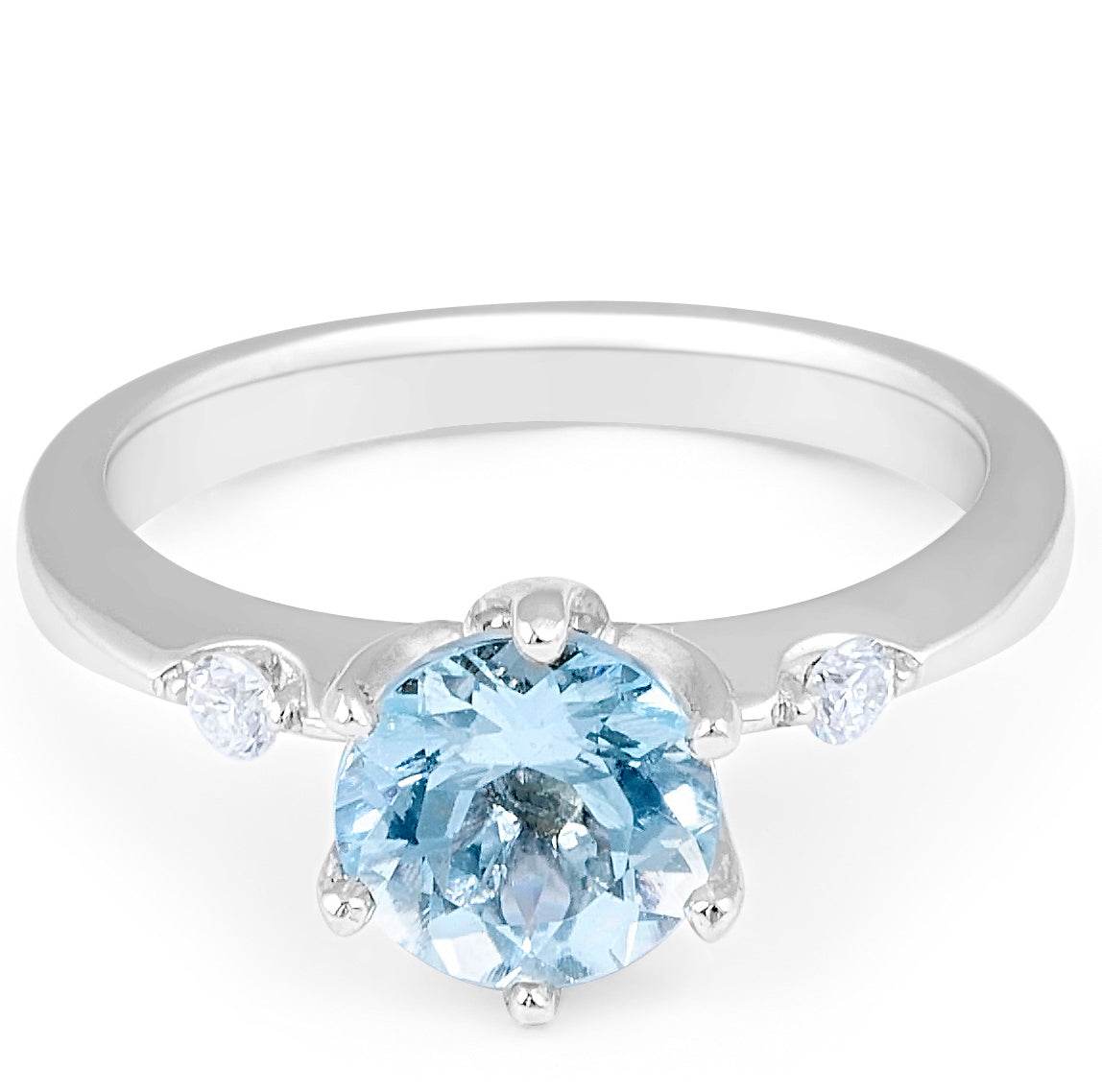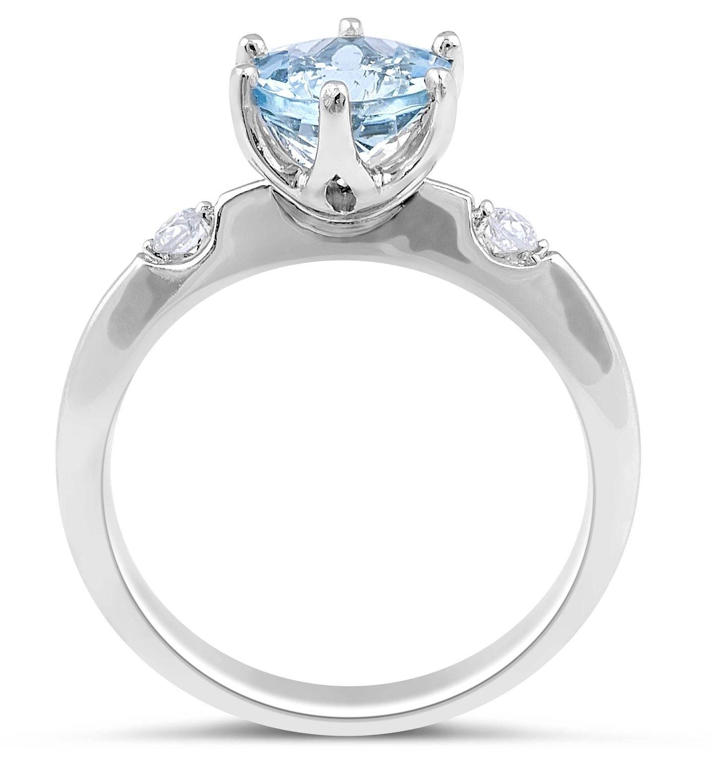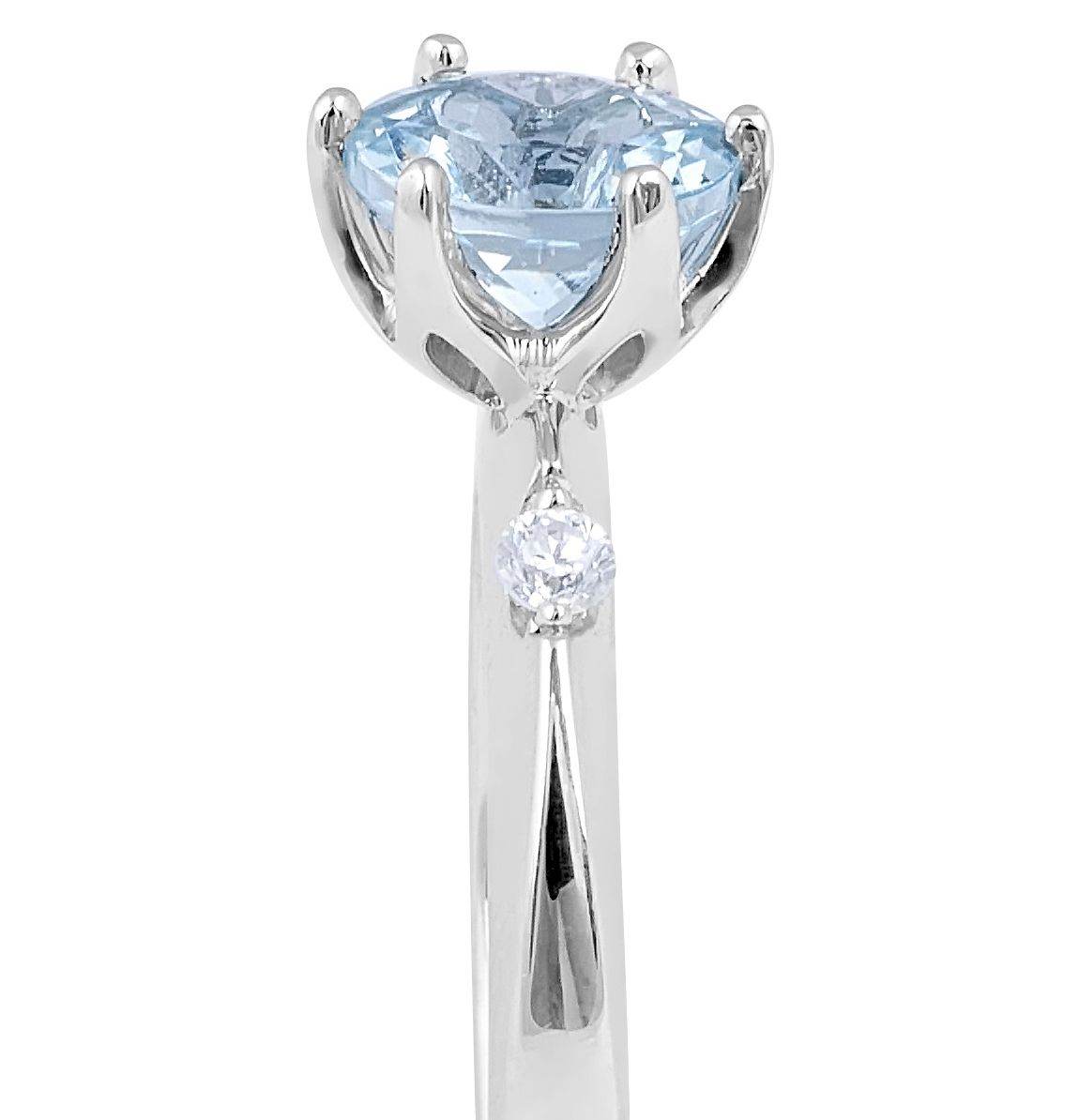 18 Karat Aquamarine Diamond Engagement Three Stones Ring Set with 1.16 Carat Natural Aquamarine and 2 Round Brilliant cut Diamonds 0.08 Carat WIDTH: 2.50 MM.Gold weight: 3.89 gram.