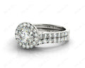 Wedding set rings with brilliant cut diamond four claws setting in the centre and forty-seven round pave setting around the centre stone and in the wedding band.